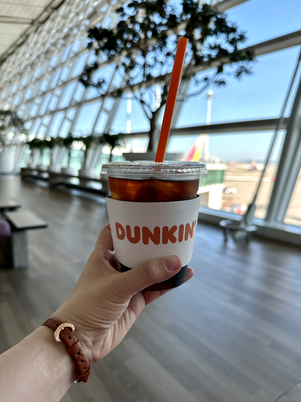 오랜만에 체크인을 마치고, 수속대도 무사히 잘 통과했고요. 너무 피곤해서 아이스아메리카노로 일단 카페인 수혈을 해봅니다. : ) 잠시 면세점에 들러 구경도 하고요. 환율이 너무 비싸서 면세의 느낌이 아니라 이번에는 그냥 패스하기로 했습니다.