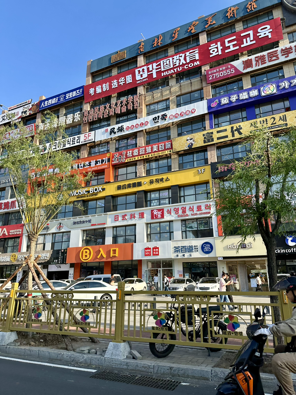 이 건물들은 연변대학교 맞은 편의 번화가 건물들인데요. 제가 자주 갔었던 곳이기도 합니다. 원래는 한국어 표기가 간판에 먼저 되어있었는데, 이제는 중국어 표기가 먼저 나오도록 다 바뀌어 버렸어요. 아예 중국어만 있는 간판도 있고요. 속상해서 찍은 것...ㅠㅠ
