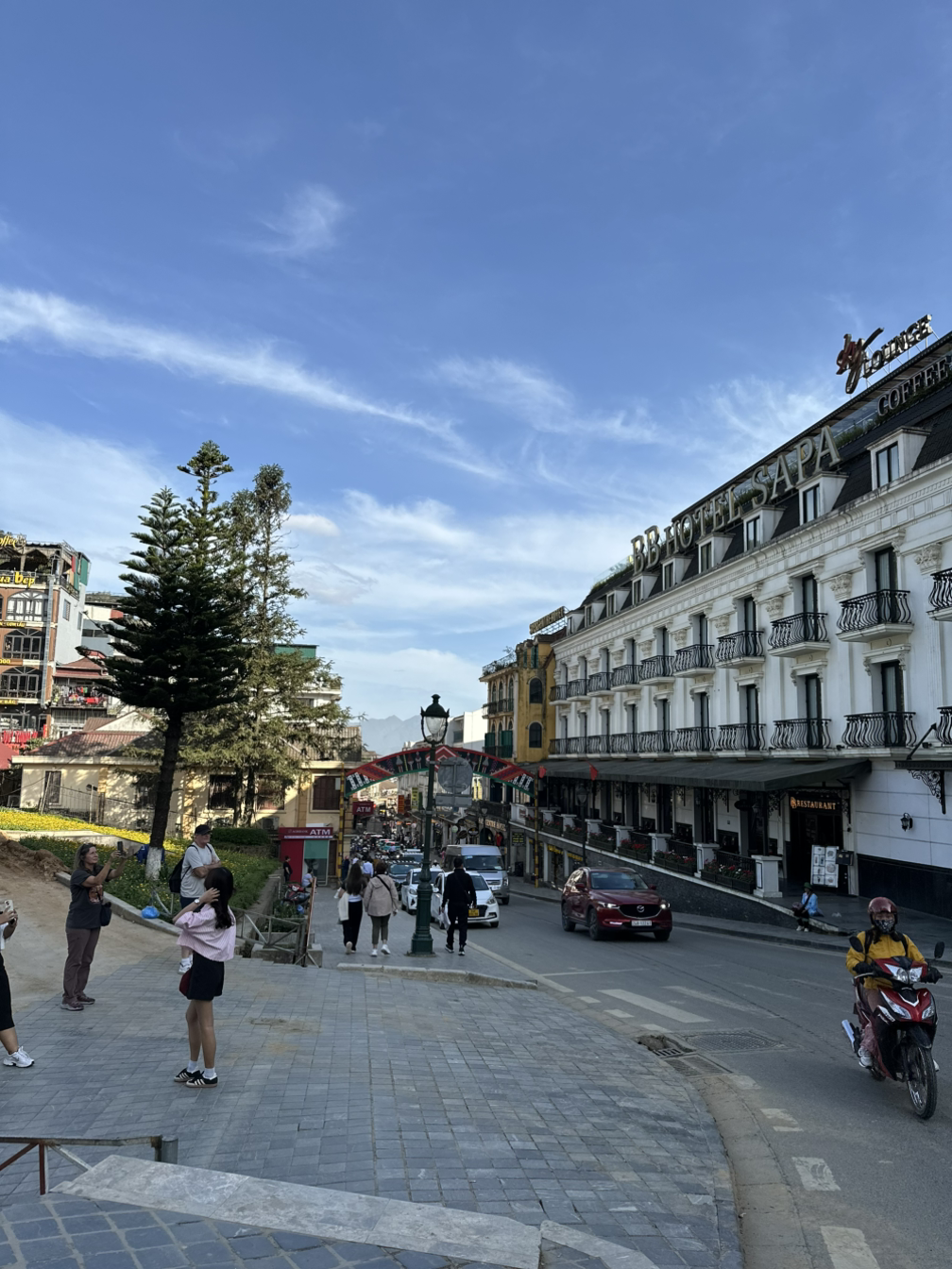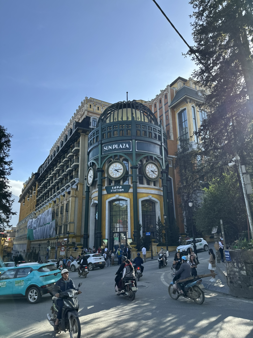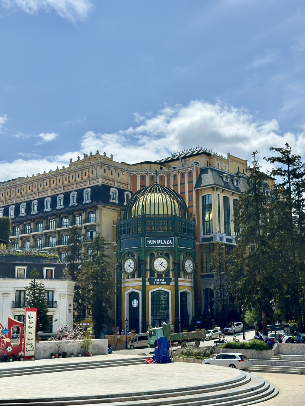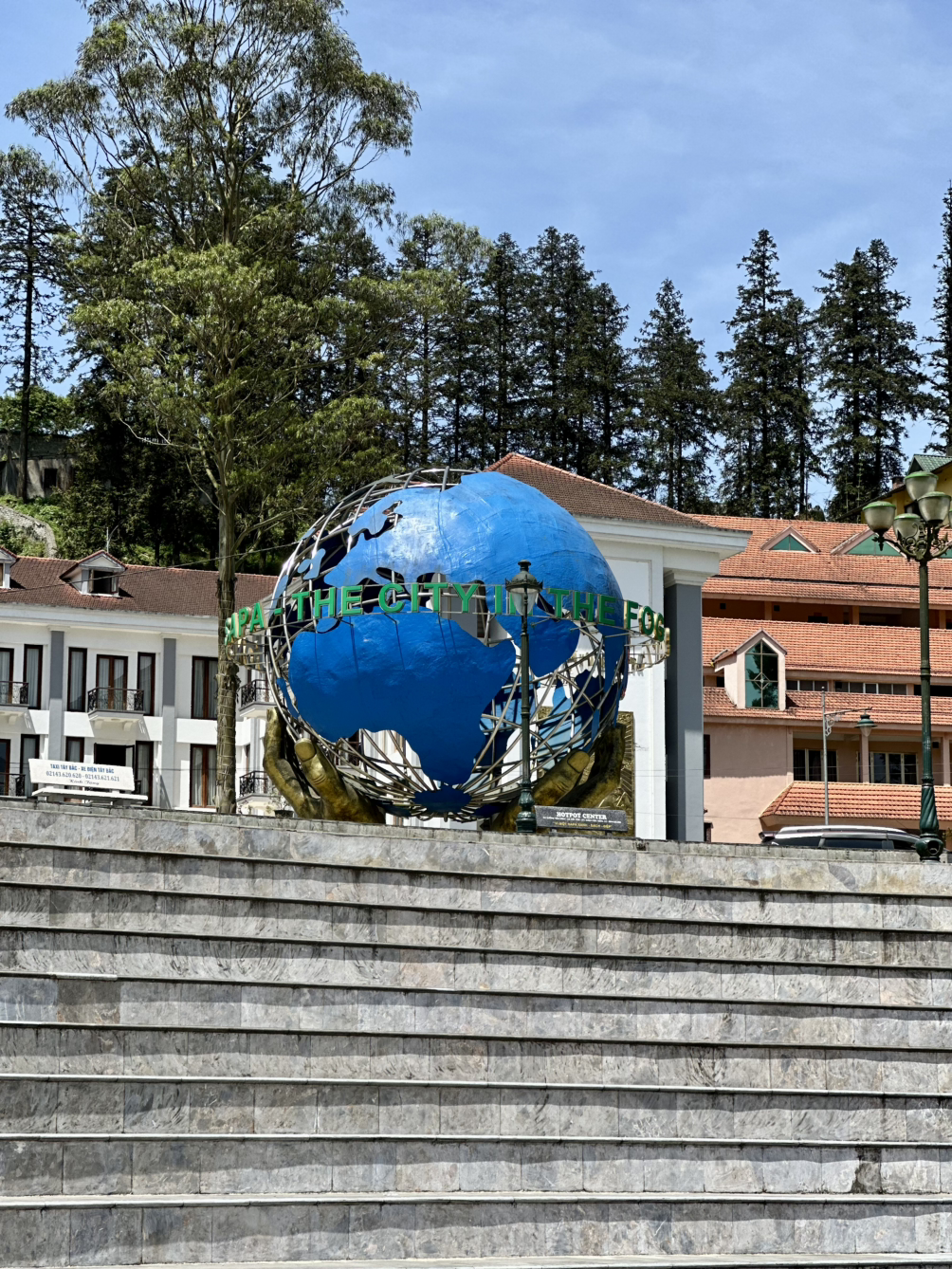 사파의 트레이트 마크인 선플라자 호텔과 지구본. 안개 속의 마을이라는 말이 있을 만큼 사파는 고지대에 있어요. 선플라자 호텔은 사파의 중심부에 있는데 밤에 오면 더 예쁩니다. 조명이 아름답게 켜지기 때문이에요. 하지만 왜 때문에 이 사진을 찍은 시간은 고작 오후 1시 30분 정도...? 쨍하게 햇빛이 집중조명하는 시간이었습니다.