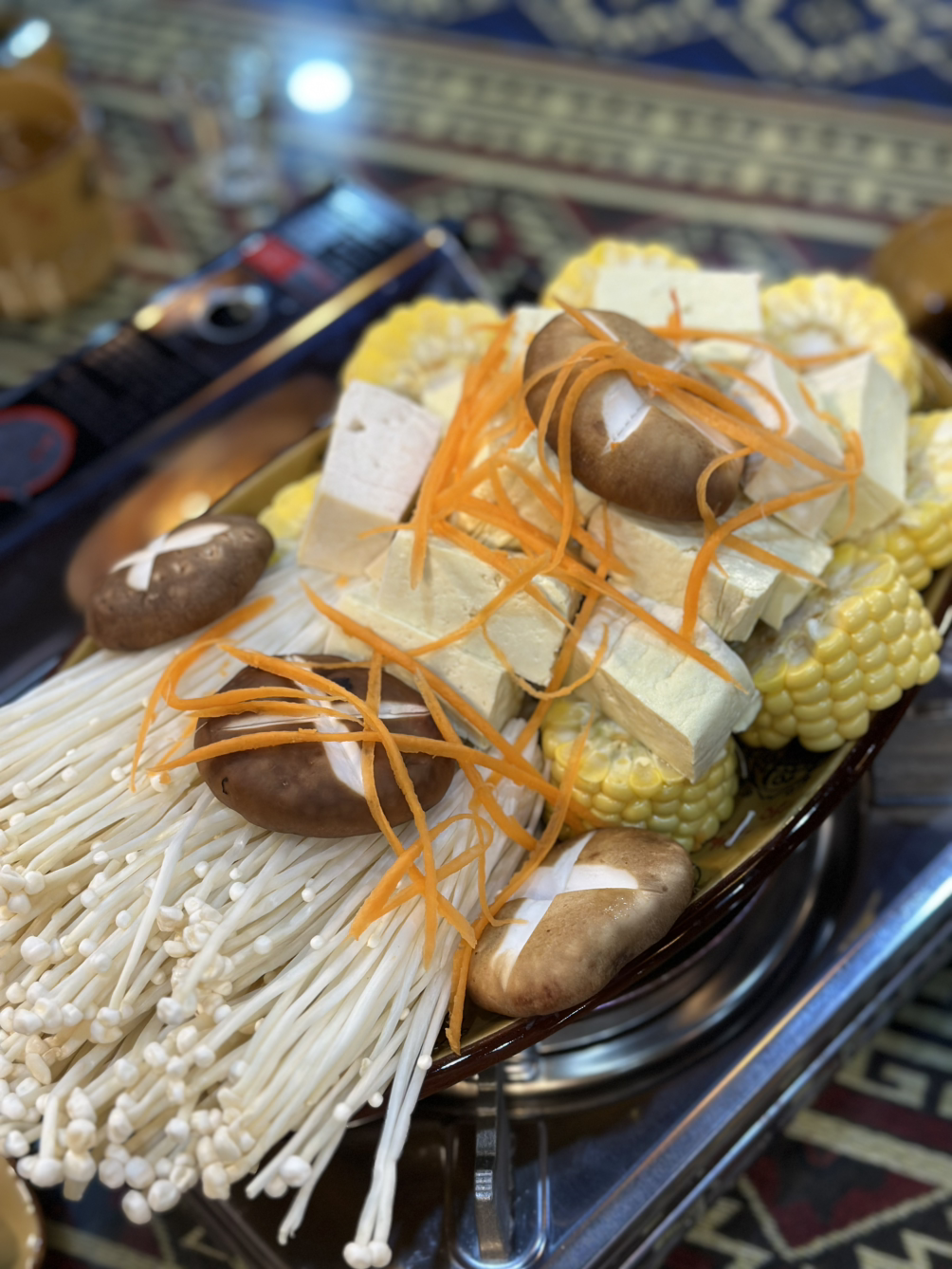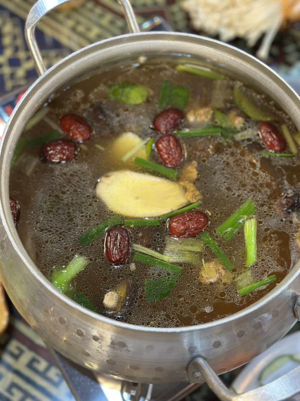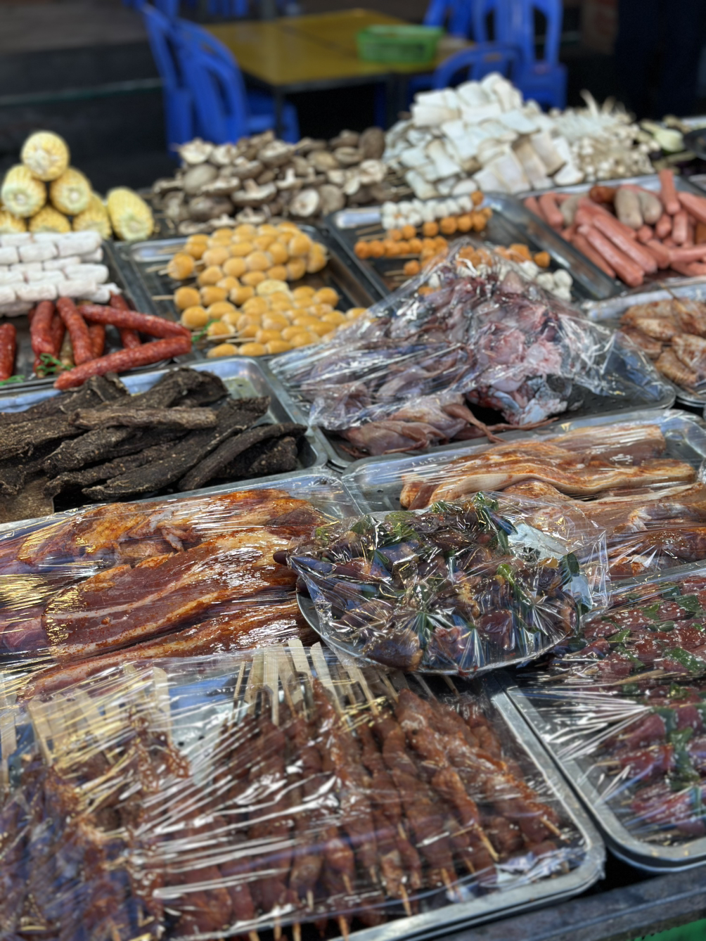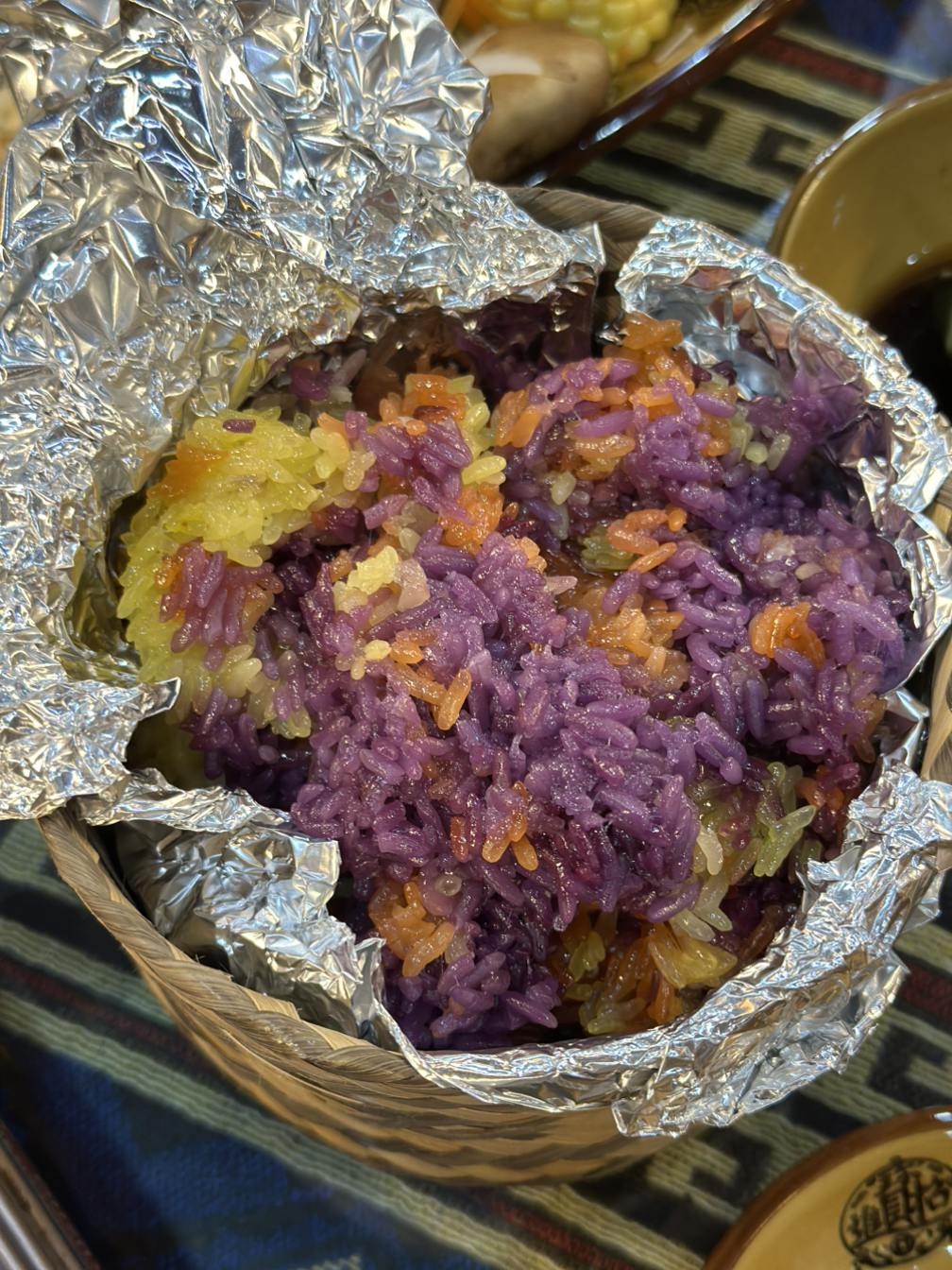드디어 나온 음식. 저희는 현지식 핫팟? 샤브샤브 같은 것을 추천받아서 주문했는데요. 앞에 나온 에피타이저는 먹을만 했으나, 닭고기가 오골계인가? 신기한 모양의 닭고기가 나와서 아무도 못 먹었다고 합니다. 셋 다 비위가 약한 편…ㅎㅎㅎ 결국 숙소 근처 가서 가볍게 맥주나 한 잔 더 하기로 하고 샤브샤브는 먹지 못하고 나왔습니다. ㅎㅎㅎ 하지만 여러 색의 쌀이 섞인 밥은 맛있었어요.