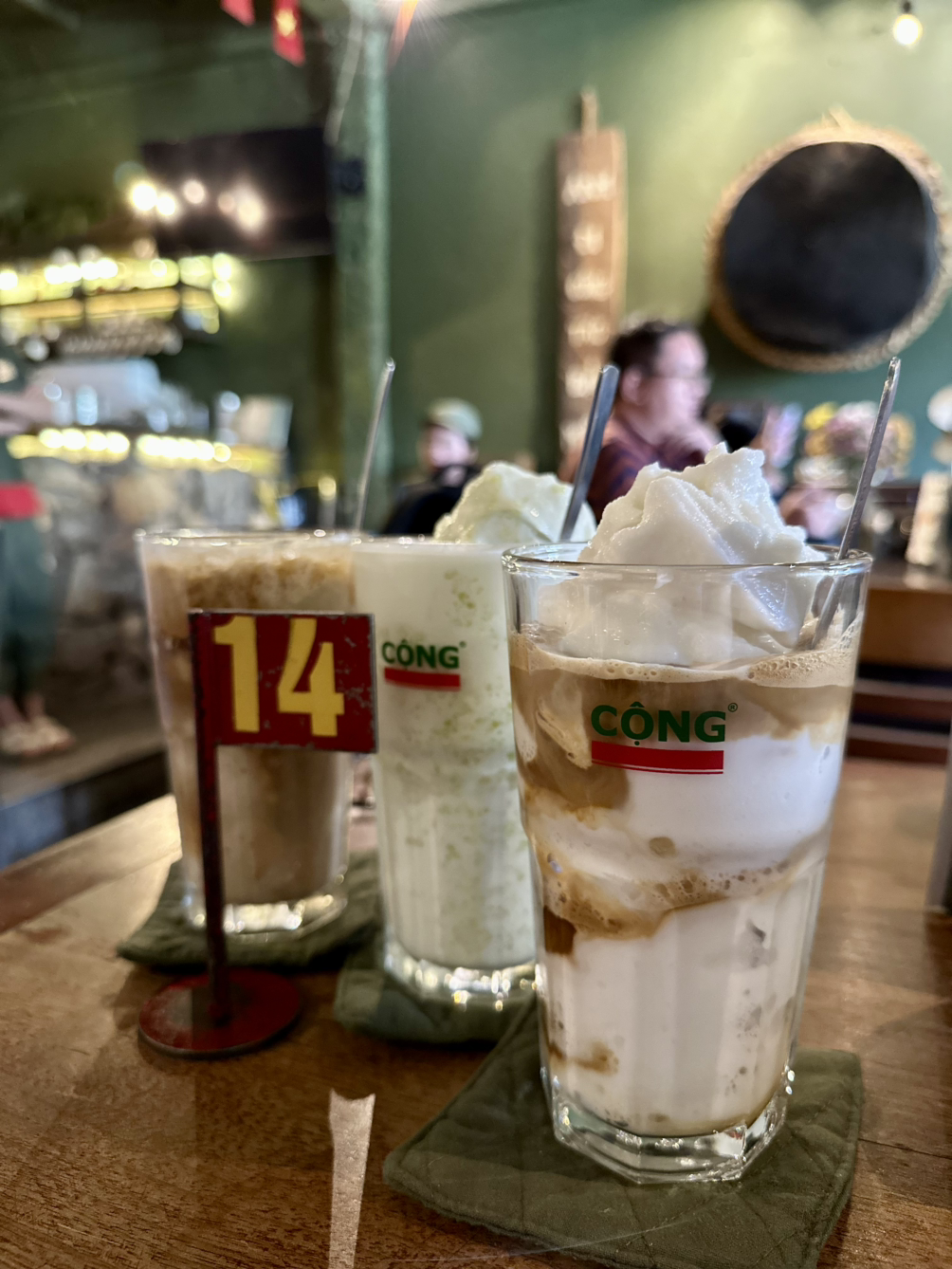 콩다방에서 먹는 다양한 종류의 코코넛커피. 사파에 있는 대부분의 카페는 문을 열어두고 있어서 에어컨을 켜 놓아도 그닥 시원하지는 않았어요. 그래도 시원한 음료 마시며 더위를 식혀봅니다.