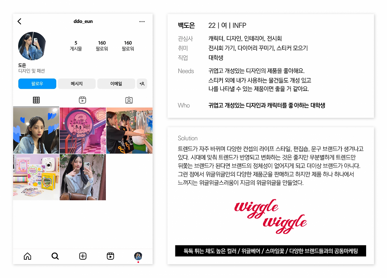 도은이의 “일상에서 필요한 물건”이라는 Needs에 대한 충족은 위글위글이 아닌 다른 브랜드도 충족시켜 줄 수 있는 부분이기도 합니다. 그렇기에 Needs는 도은이가 아닌 누구나 필요한 물건이 생기면 위글위글의 고객이 될 수 있는 부분이기도 합니다.