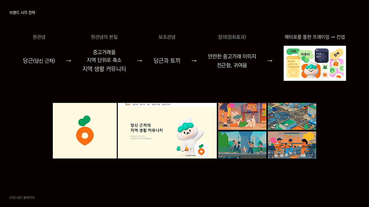 언어전략만큼이나 시각전략에서도 메타포를 잘 사용한 사례가 있는데 바로 당근(마켓)입니다.