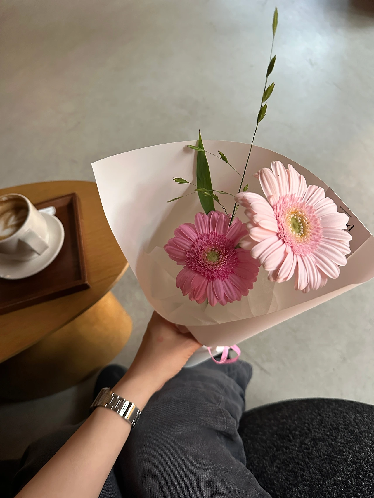 잠시 뒤 돌아온 남편은 꽃다발을 건넸다. 핑크색 거베라 두 송이였다. 단정하면서도 화려한 꽃다발을 보고 있으니 기분이 새뜻해졌다.
