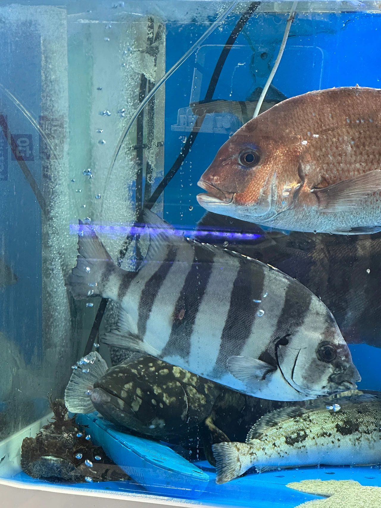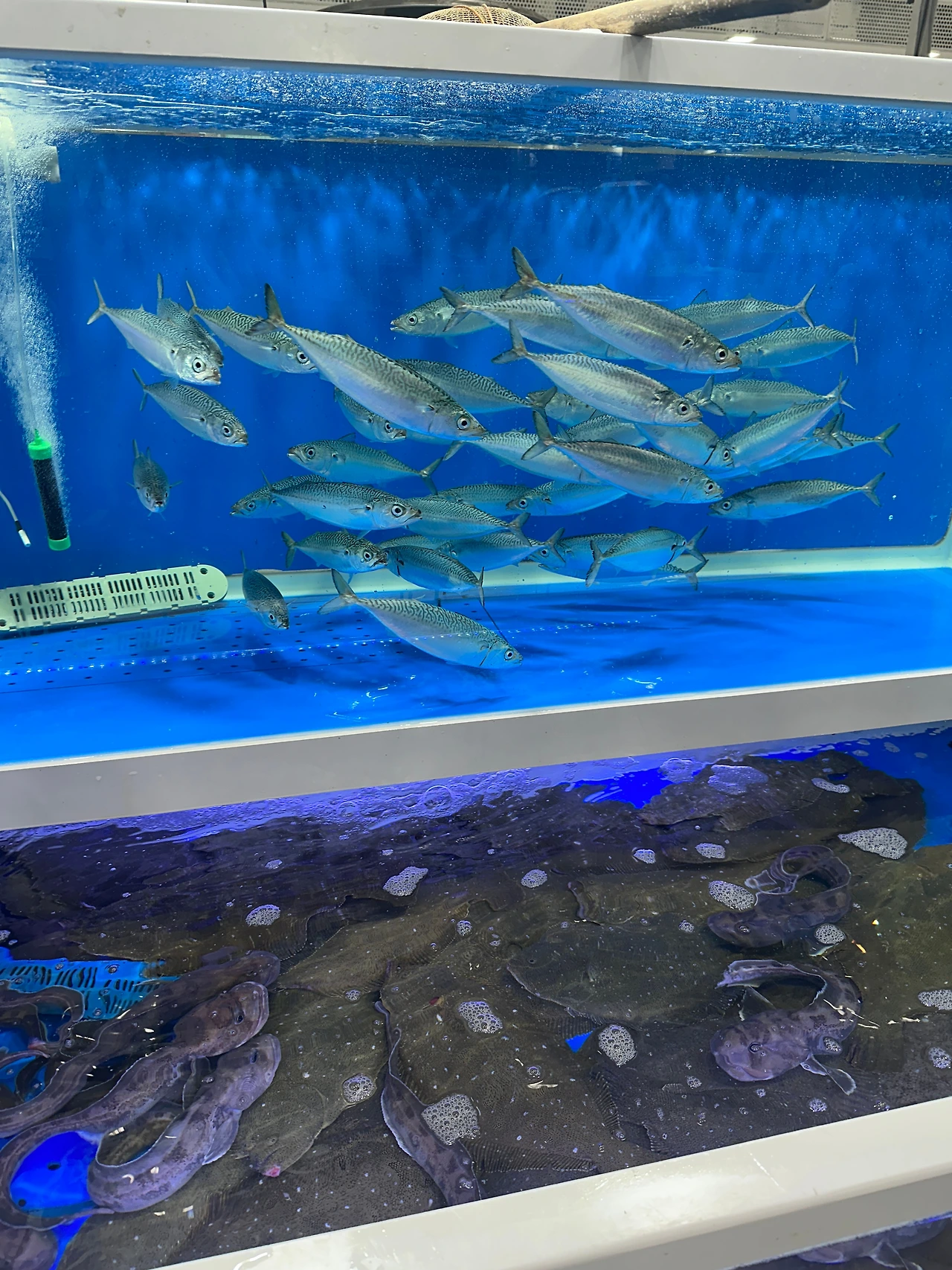 옆 수조에선 주꾸미 한 마리가 튀어나오더니, 바닥에 철퍼덕 떨어졌다. 수조 옆의 갈색 바구니 같은 플라스틱 통에서 기어 나온 듯했다.