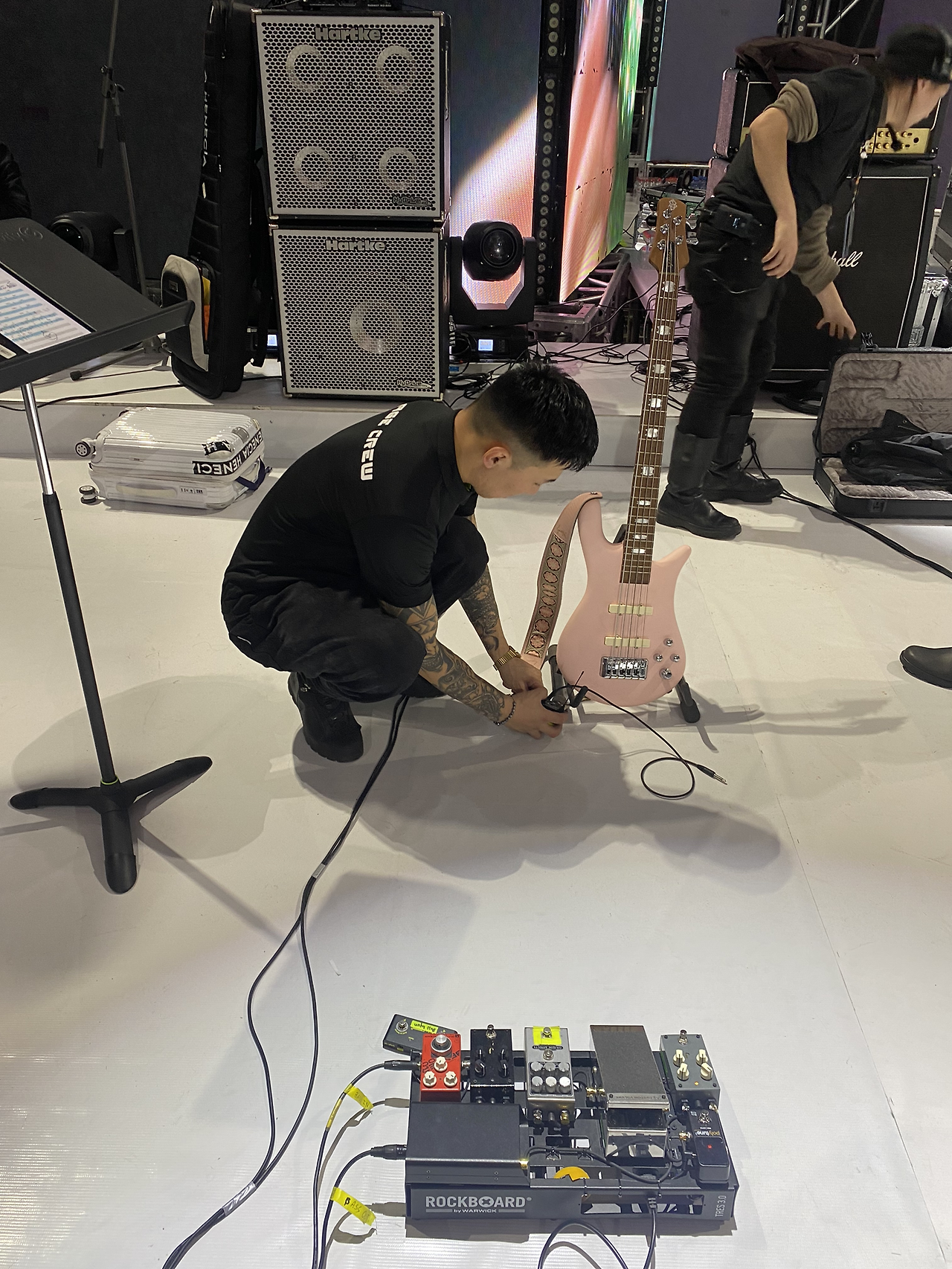 올라가서 악기를 세팅하고 리허설을 하려고 장비들을 체크하는데 공연 전 한국에서 보낸 장비목록이 중간에 소통에 문제가 있었는지 멤버들이 들어야 하는 퍼스널믹서시스템이 딱 한대밖에 도착하지 않은 상황.(우리가 필요한 건 6대).
