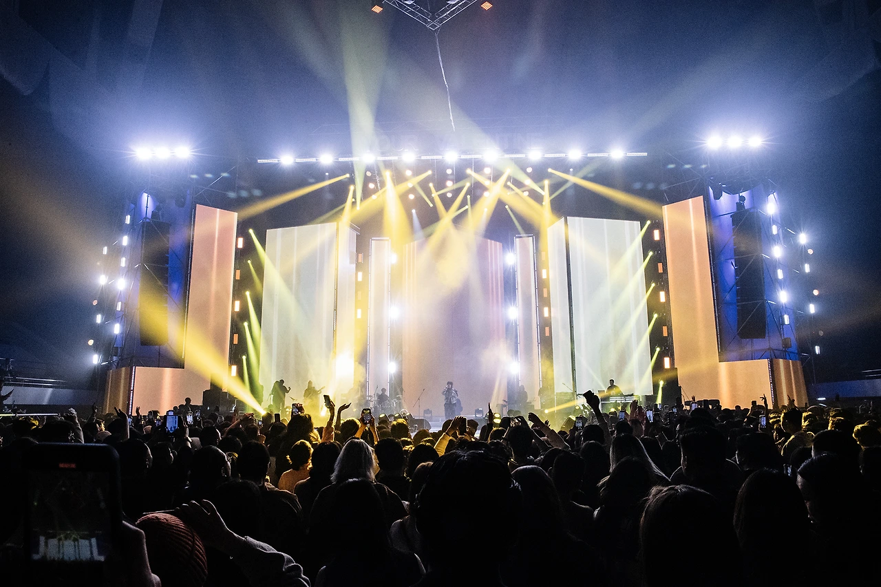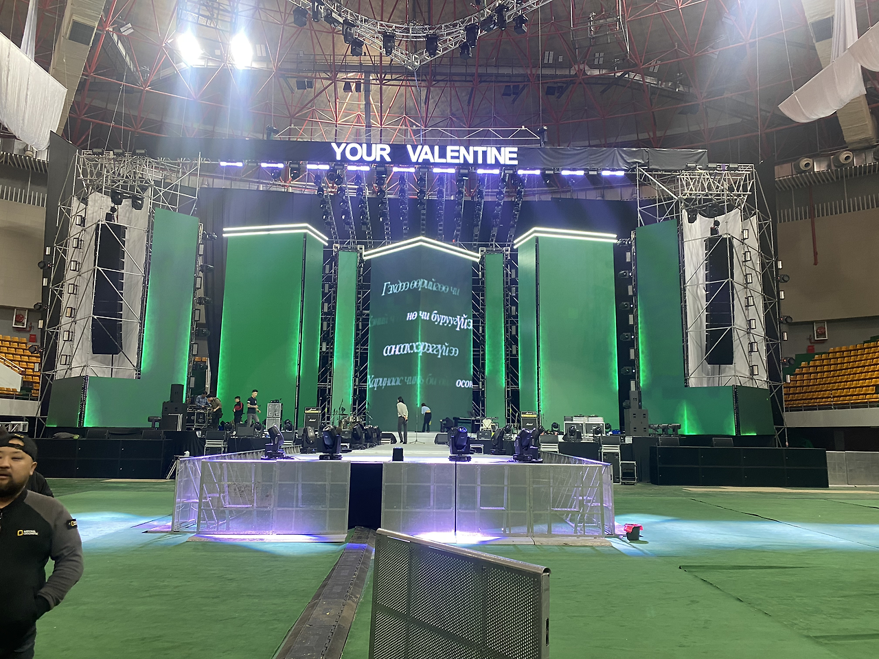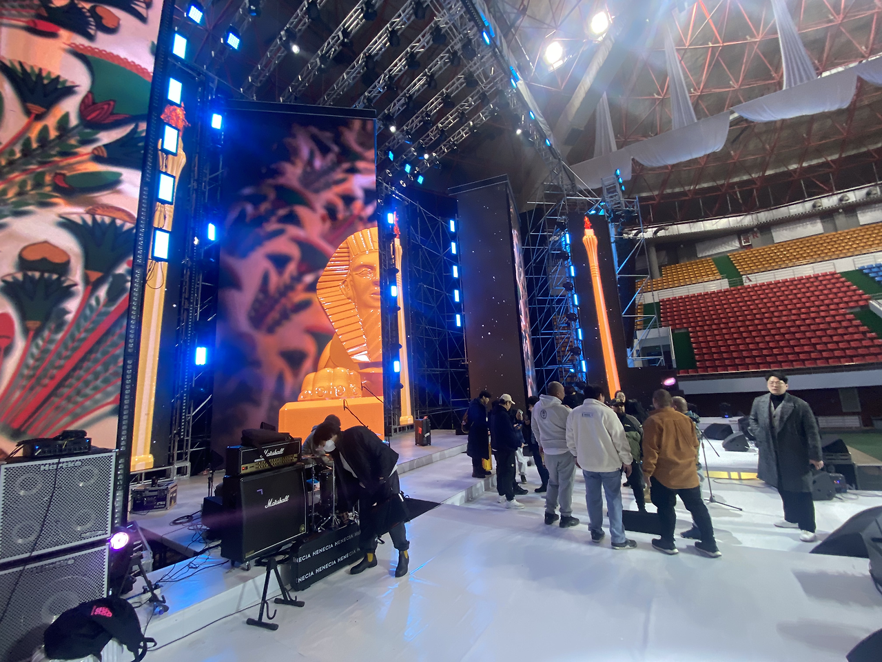 15,000명 정도 들어오는 공연장에 커튼식으로 펼쳐진 LED패널, 그리고 특징적인 돌출무대가 길게 뻗어있다.