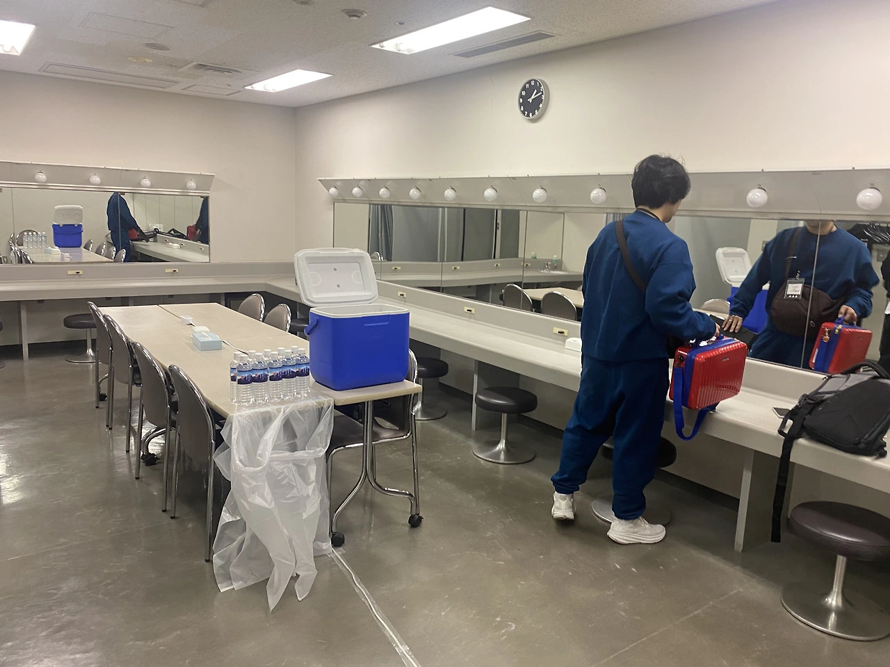 리허설날의 후루사토홀의 밴드 대기실은 특이하게 다다미스타일의 방이었는데 리허설이 쉴 틈 없이 종일 진행되어서 대기실에 들어간 건 리허설 마친 후 잠시 대기하면서