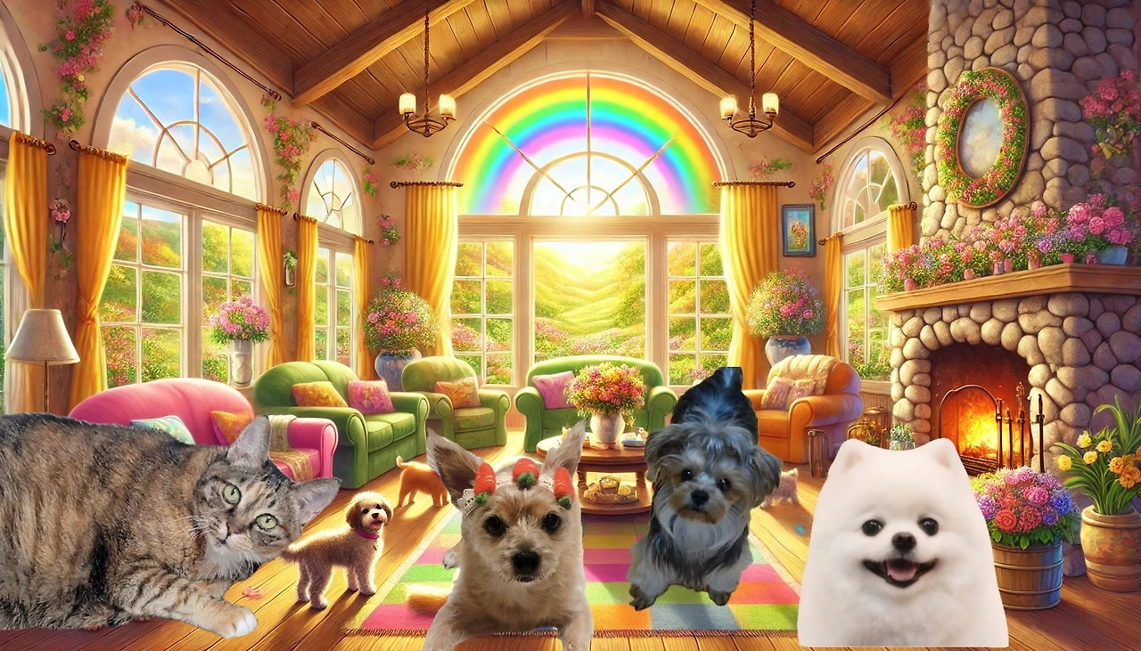 That night, I returned to my bed and looked out at the Rainbow Bridge through the window, falling asleep happily. I was excited about life here with my new friends and the new adventures waiting for me.