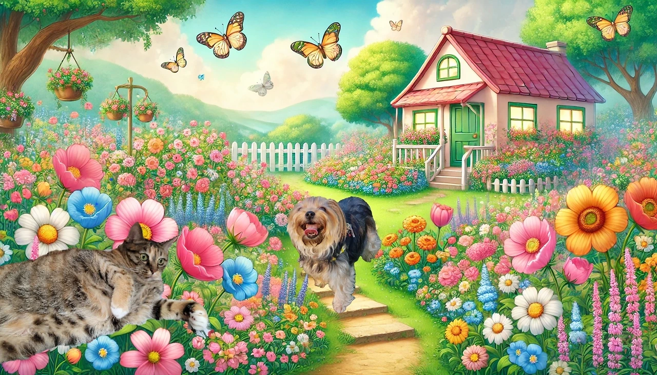 I was a bit nervous, but the warm gazes of my new friends gave me courage. "Hi, I'm Toto. I was lucky to be loved by my family on Earth for 15 years. I ended up here at Rainbow Bridge, but I hope my family back on Earth isn't too sad. Especially my big sister. Anyway, this place is still new to me, but it doesn't seem so bad. Nice to meet you all."