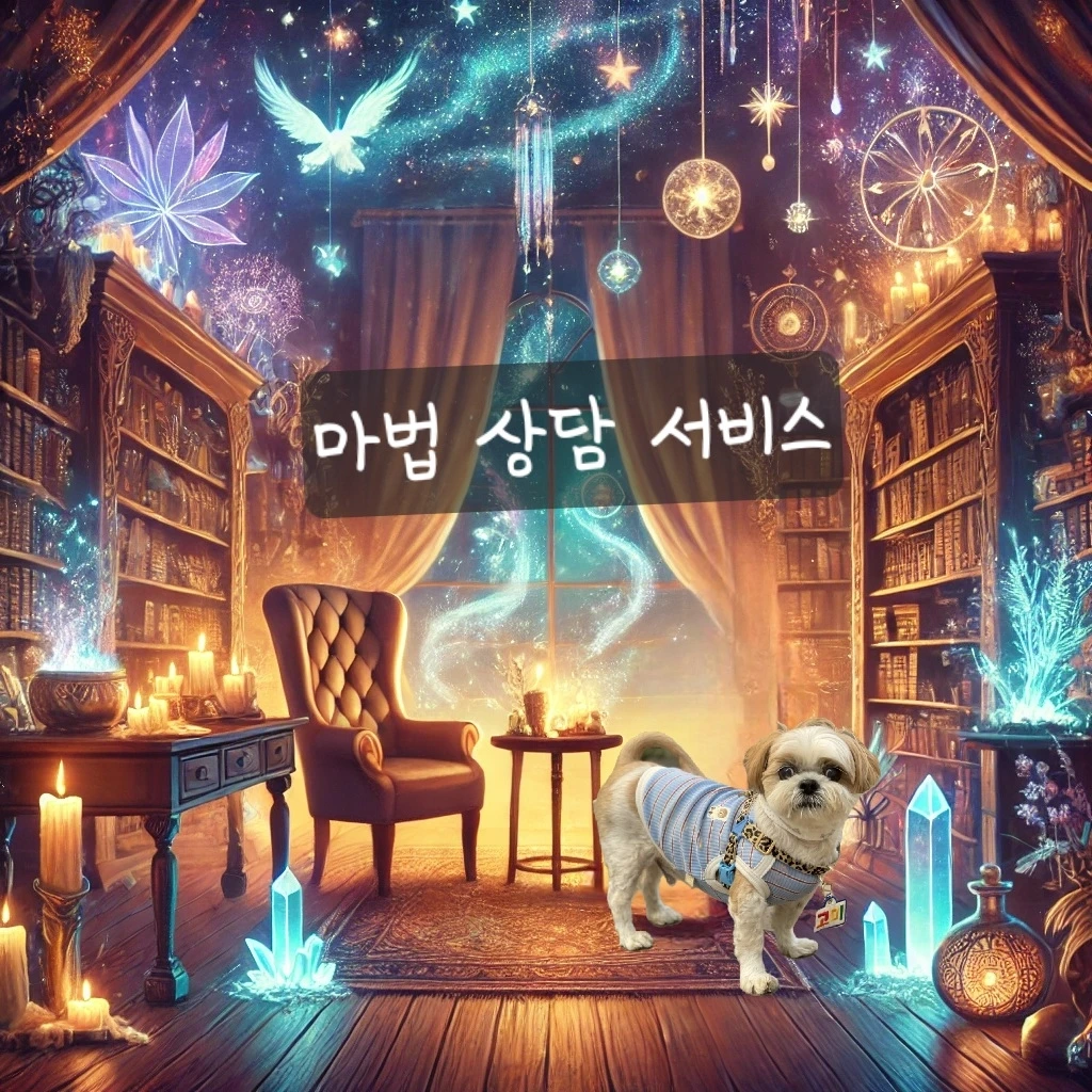 마법 상담 서비스 (Magical Counseling Service) 마법 상담 서비스는 심리적, 정서적 문제를 가진 주민들을 돕는 서비스야. 심리학과 마법을 결합해 마음의 상처를 치유하고, 행복을 찾도록 도와줘. 이건 곰이가 전문이야!