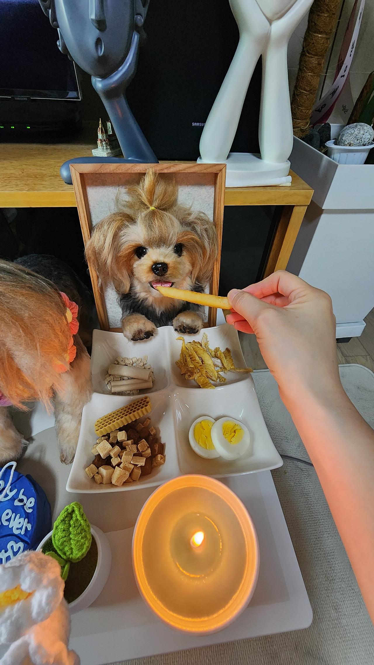feat.모들리 (주문 제작을 통해 아트돌과 양모펠트로 반려동물의 모습을 재현해서 추억하는 방법이 있다. 왼쪽은 액자형, 오른쪽이 전신형)