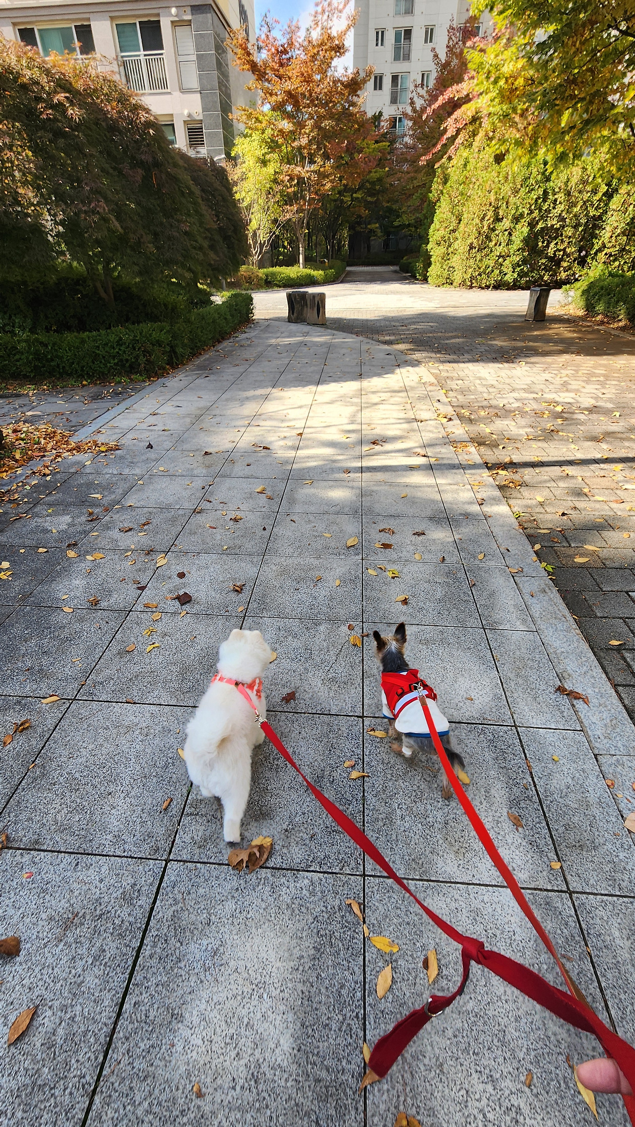 오늘도 내게 주어진 숙제, 댕댕이들 산책시키기. 그래도 다행히 요즘 날씨가 좋아서 아주 많이 귀찮지는 않다.