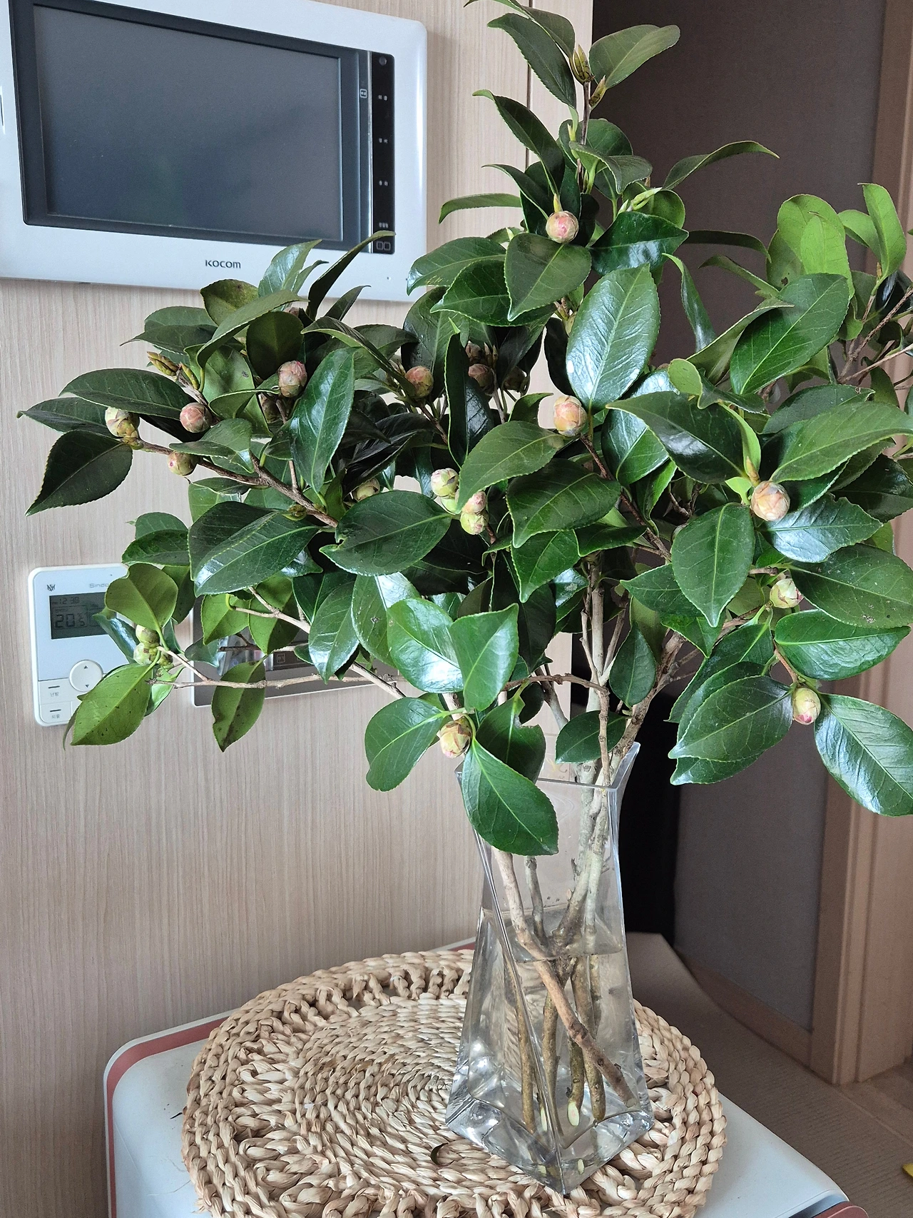 동백나무는 늘 봉우리로 들이기 때문에 피어나기까지는 기다림이 필요하다. 하지만 그 기다림마저도 동백의 묘미다. 매일 꽃봉오리를 들여다보며 오늘은 조금 더 부풀었을까? 내일쯤은 터질까? 그렇게 마음 한편에 작은 기대를 심어놓고 지켜보는 즐거움이 있다. 생각보다 좀 오래 기다려야 할 때가 많지만.