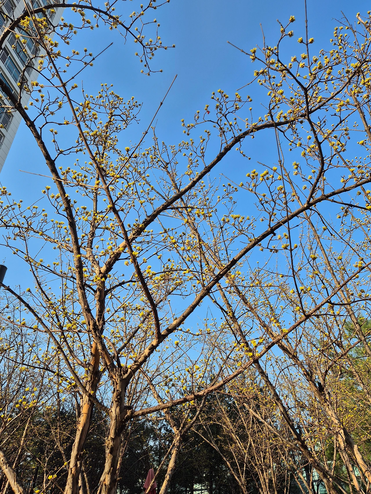 지난겨울의 흔적을 지운 듯, 앙상했던 가지마다 작은 노란 꽃망울이 터지고 있었다.