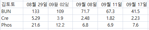 BUN수치를 더 확 안정적으로 낮추기 위해 일단 이번 주까지는 정맥 수액을 맞아야 한다.