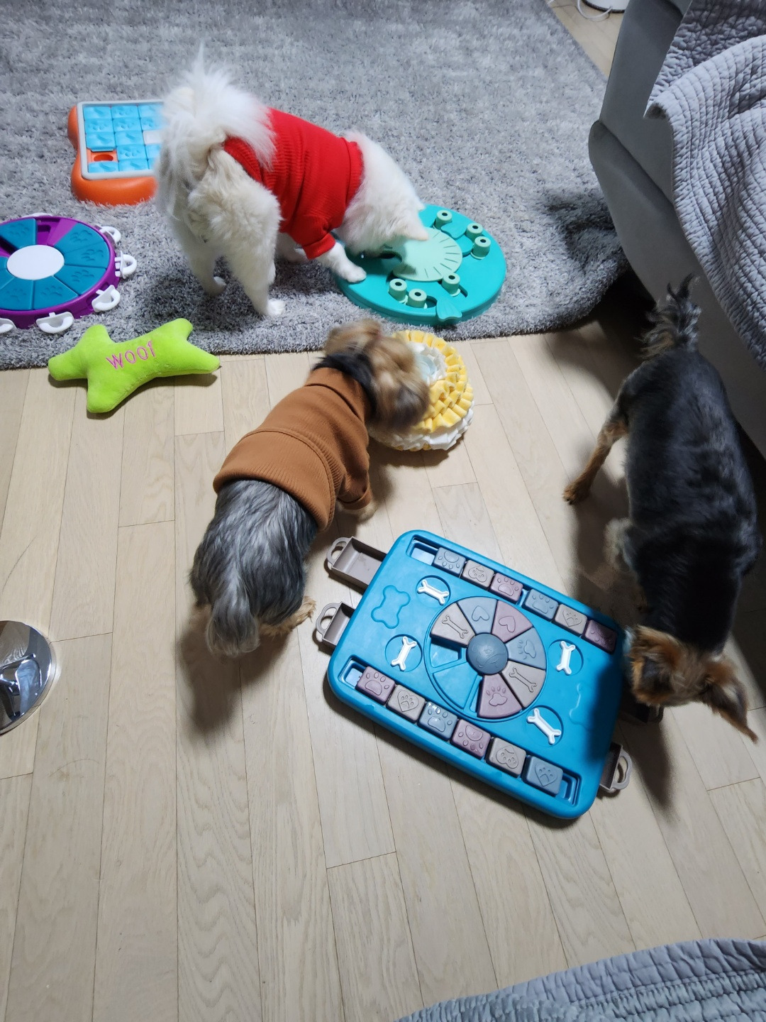 눈 뜨면 애들 목줄 챙겨서 나가서 30분 정도 걷고 들어온다. 이마저도 애들이 세 마리라서 엄마나 짝꿍의 도움이 없으면 힘들다. 요즘에는 출근 전 산책 1회, 퇴근 후 노즈 워크 1회 정도로 해서 노즈 워크로 산책의 효과를 내려고.. 한다..라는 변명..을 하고있다.