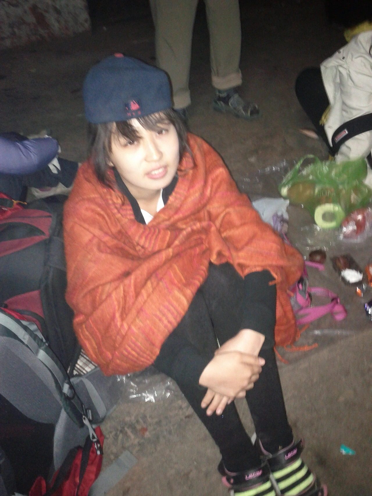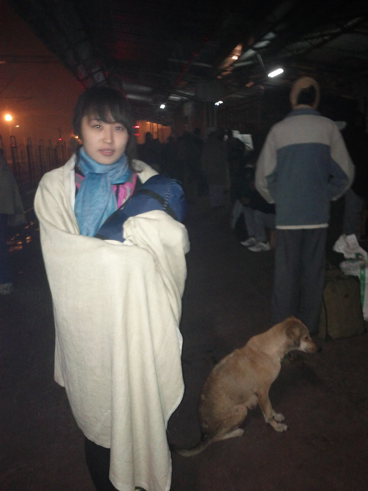 일단 도착하면 플랫폼으로 가서 돗자리 따윈 없으니 아무거나 펴고 앉는다. 이미 도착해서 누워서 자고 있는 사람들도 있다.