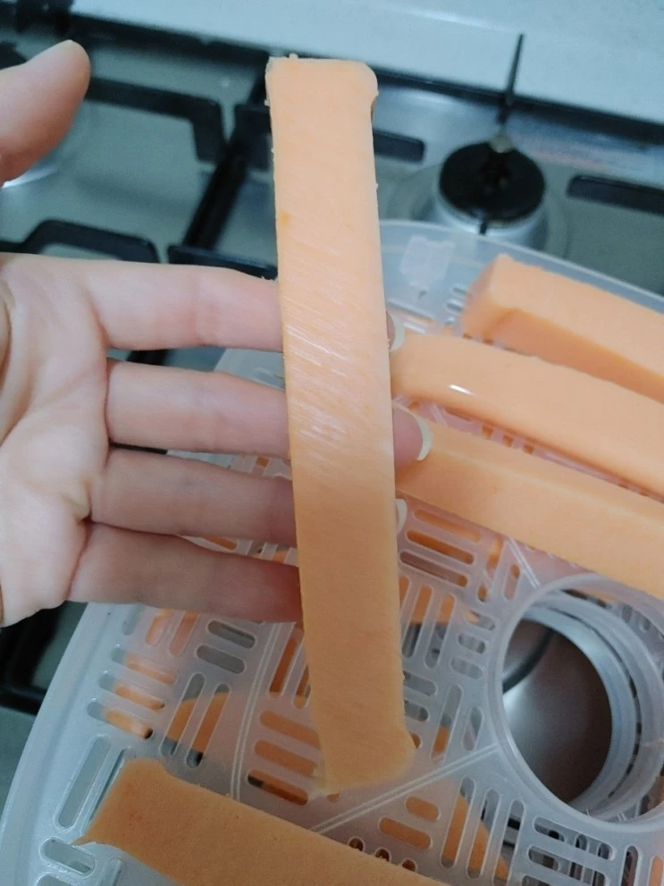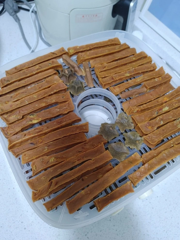얼마나 오래 건조해야 할까? 나도 정확히는 모른다. 원하는 딱딱함의 정도가 나오면 그만둔다. 보통 아침에 건조기 돌리고 출근했다 퇴근해서 돌아오면 80%는 완성되어있다. 대략 10-12시간 정도 걸리는 것 같다. 물론 두께 그리고 건조기 온도 및 사양에 따라 다를 수 있다.