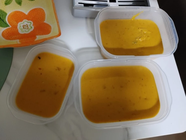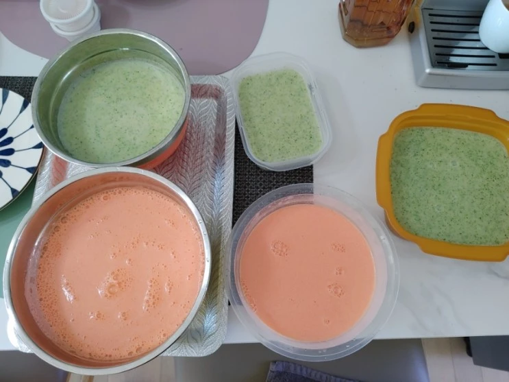 그리고 아래에 같이 용기에 나눠 담아 냉동실에 2-3시간 정도 넣어둔다.