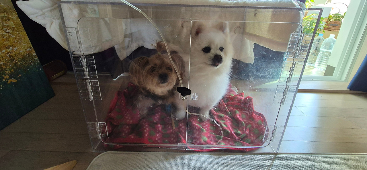 나는 새벽 2시 30분-3시 사이면 어김없이 컥컥 소리와 함께 노력성 호흡을 하는 토토를 조심히 들어 산소방으로 옮긴다. 나는 산소방 앞에 웅크리고 누워 토토를 살피며 졸다 깨다를 반복한다. 처음엔 애가 숨을 제대로 못 쉬니 병원에 가면 뾰족한 수가 있을까 싶어 24시 병원으로 뛰었으나 그곳에서도 해줄 것은 이뇨제와 산소공급뿐.