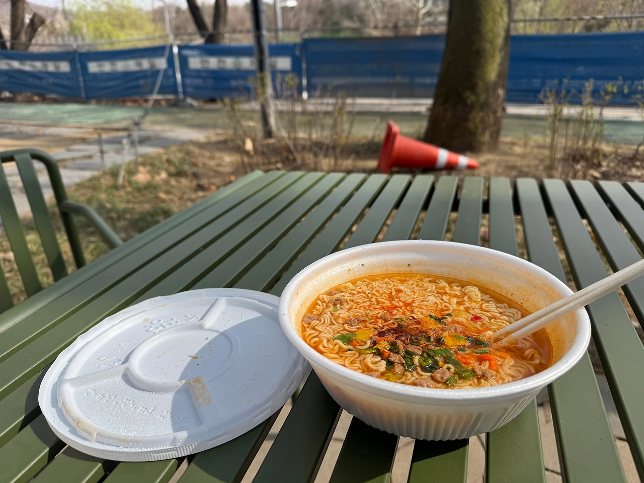 편의점에서 라면에 물받아서, 도서관 앞에서 먹어야겠다.