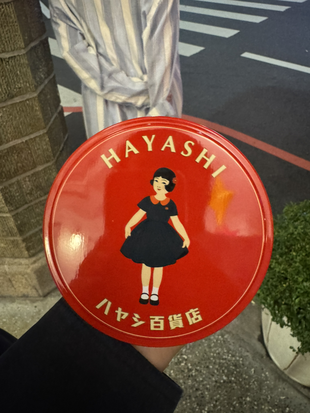주머니에서 잔돈을 꺼내 아내에게 건넸다. 아내가 산 쿠키는 빨간색 원형의 철제통에 들어 있었다. 뚜껑의 아래쪽에는 하야시백화점이라고 쓰여 있고 그 위로는 붉은 카라가 있는 검은 원피스를 입은 소녀의 캐릭터가 프린트 돼 있었는데 왠지 익숙한 모습이다.