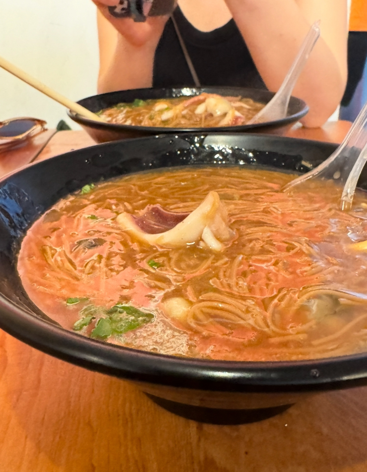 평소보다 메뉴 선정에 신중했다. 아직 속이 좋지 않아 음식의 향에 민감했기 때문이다. 골목을 배회하다가 스린역 출구 옆에 있는 국수 가게로 갔다. 유튜브에서 자주 보던 대만 곱창국수와 닮았는데 곱창 대신 토핑을 선택할 수 있었다. 굴이 들어간 국수, 오징어가 들어간 국수를 하나씩 주문했다. 점도가 진득한 국수 위로 재료만 다를 뿐 맛은 같았다. 국수는 한꺼번에 끓여내고 그 위에 토핑만 따로 올려주는 것 같았다. 짧은 국수면이라 젓가락보다는 숟가락을 이용해 먹어야 했다. 대만에 와서 우리가 고른 첫 식사였다.