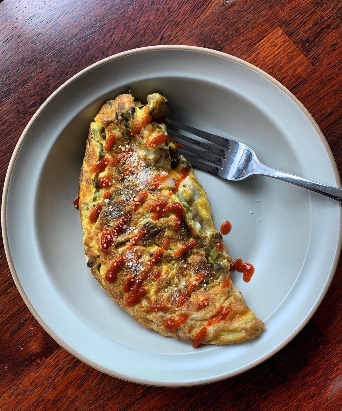 아침으로 종종 오믈렛을 해 먹는다. 냉장고에 남은 재료와 계란만 있으면 되니 이보다 쉽고 만족스러운 요리도 없다. 파, 버섯을 넣기도 하고 김치를 종종 썰어 넣기도 하고 남은 반찬, 예를 들어 감자채나 김자반 등을 넣기도 하는데 어떤 재료를 넣어도 대체로 잘 어울린다.