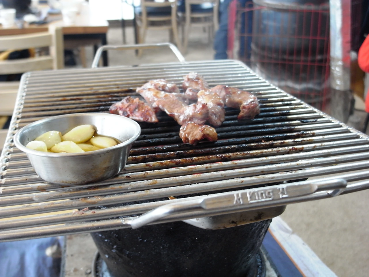 양념을 안 시킨 건 이유가 있었다. 양념 고기는 잘 타기 때문에 자주 뒤집어줘야 한다. 혼자 고기를 먹는데 고기에 너무 집중을 하고 싶지 않았다. 처음이지만 나는 느긋하게 처음이 아닌 것처럼 고기를 구워 먹고 싶었다. 그러려면 양념이 묻지 않은 생고기가 좋다. 몇 번씩 부산스럽게 고기를 뒤집지 않아도 되니깐.