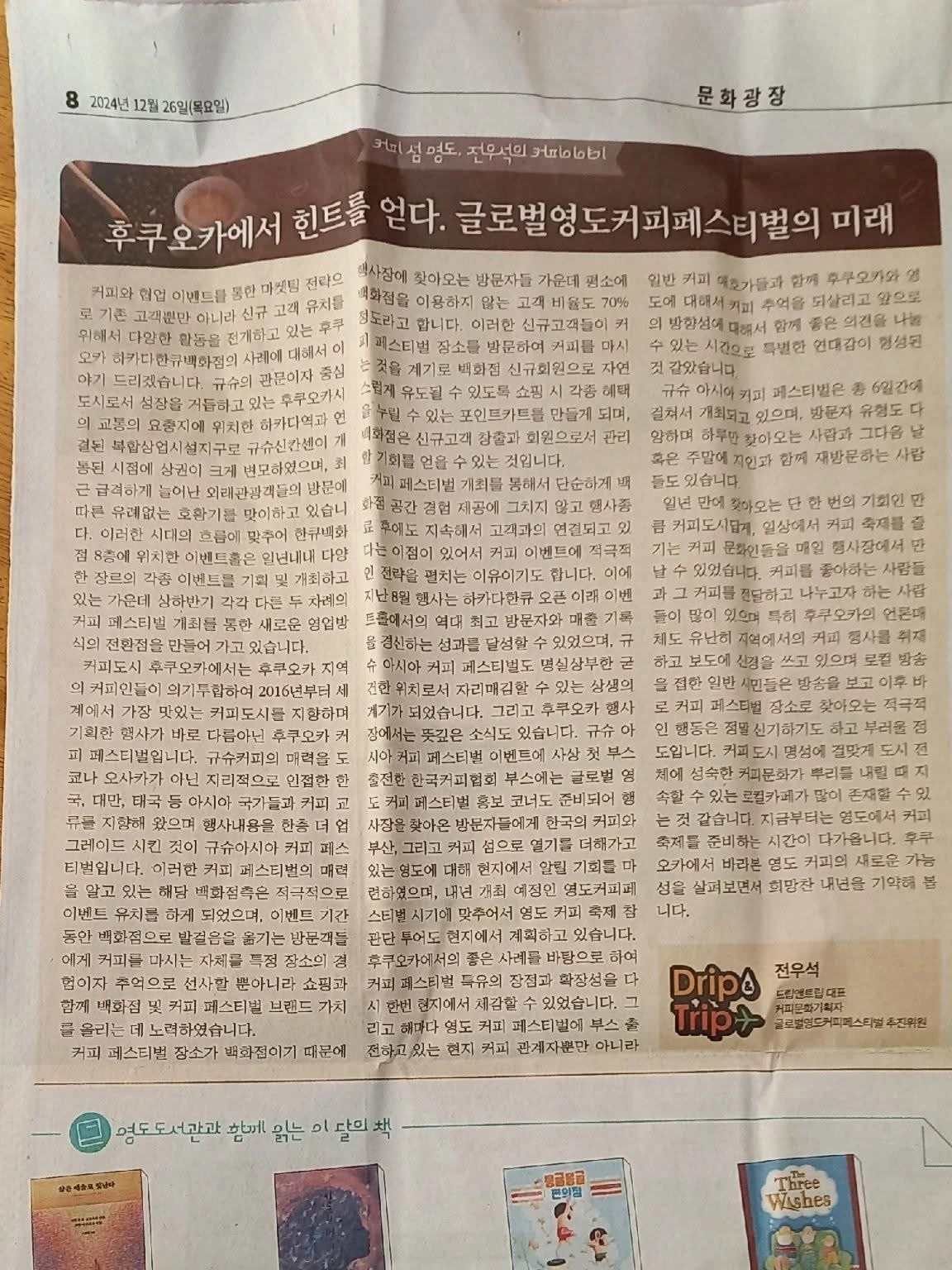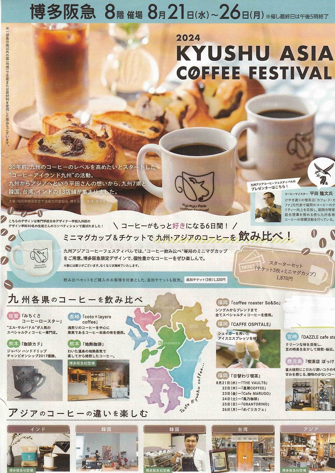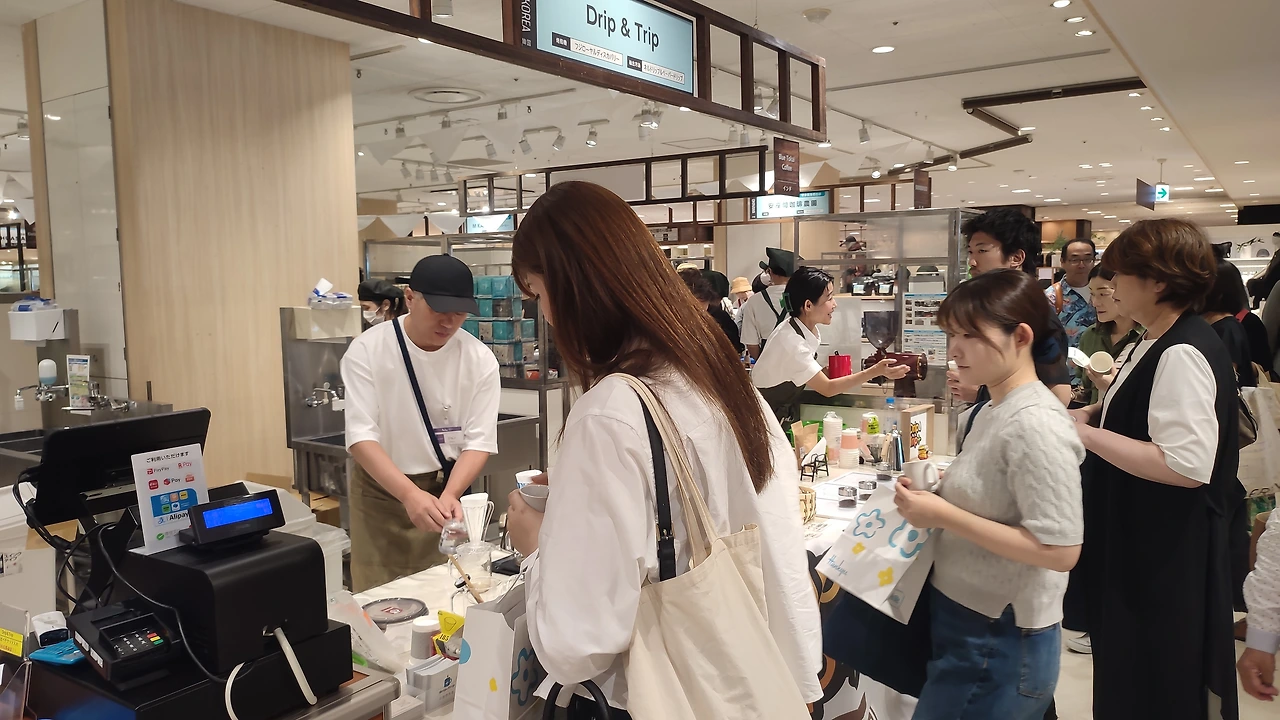 백화점 8층, 평소라면 고요해야 할 이벤트 홀이 낯선 활기로 가득 찼습니다. 쇼핑백 대신 정성스럽게 내린 커피 잔을 든 사람들, 원두 향기를 따라 줄을 선 이들의 눈빛에는 설렘이 가득합니다. 이곳은 쇼핑몰인가, 아니면 거대한 카페인가. 후쿠오카 하카타 한큐 백화점에서 열린 ‘규슈 아시아 커피 페스티벌'의 풍경입니다.