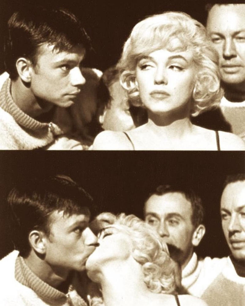 Let's make love (1960)에서 마릴린 몬로와의 키스 신