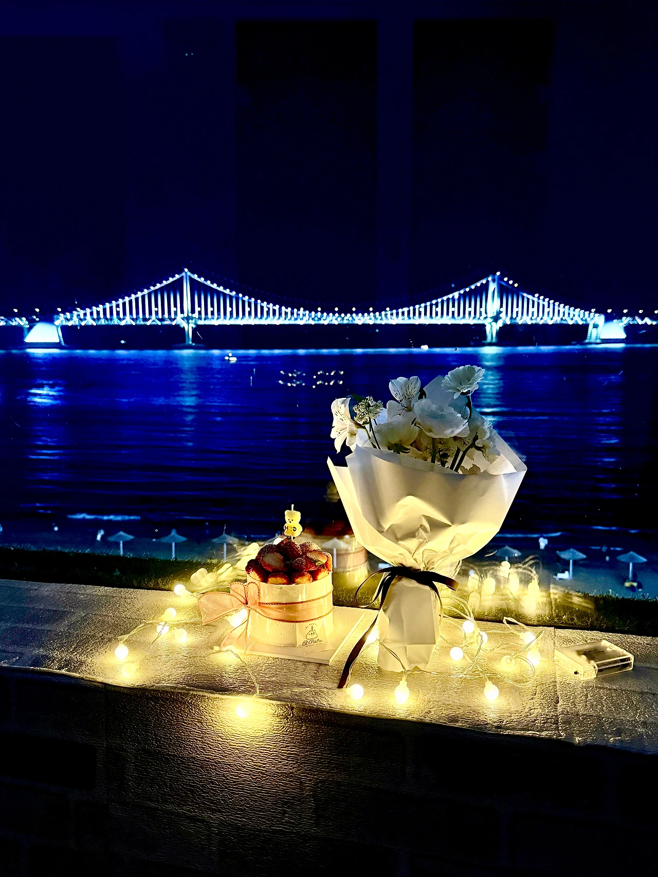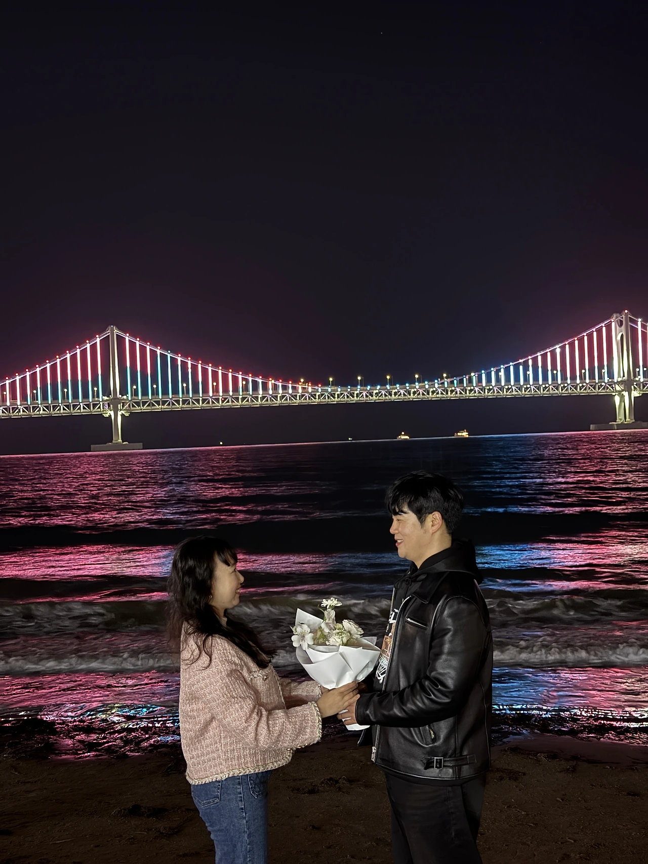 (무대. 어두운 밤. 바닷소리.)남자:20년 전엔 공연이었지.여자:오늘은?남자:오늘은 당신.(조명 켜지며 광안대교 등장.)파도: 촤아아—남자(속으로):이 장면은 평생 간다.막.