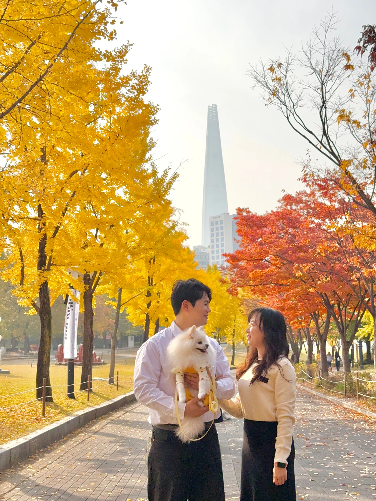 가을, 올림픽공원, 단풍, 여자친구, 강아지