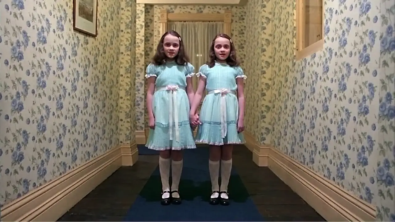 그런데 사실 <샤이닝>은 상당히 모던합니다. <컨저링>, <인시디어스>, <블라이 저택의 유령>, <힐 하우스의 유령> 같은 여타 하우스 호러 장르 영화들이 서양식 저택을 열심히 활용하며 벽난로나 짐 이동용 엘리베이터에 귀신을 출현시킬 때, 원피스를 차려 입은 쌍둥이 소녀를 말끔한 모습으로 대니 앞에 등장시킵니다.