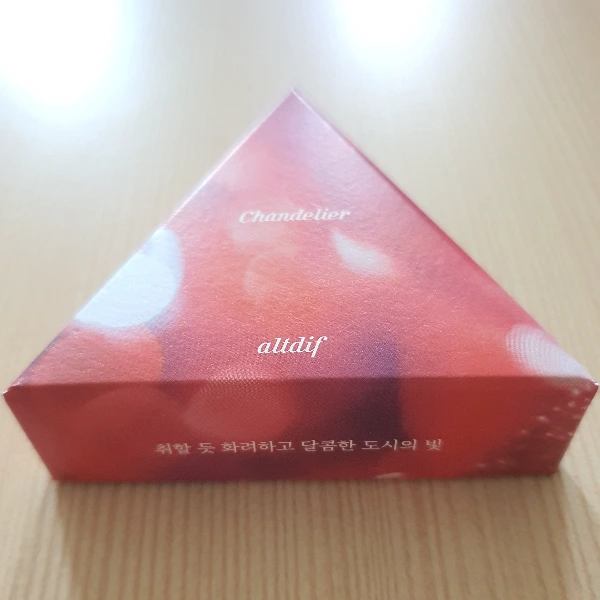 중앙에는 티의 이름, 하단에는 문구가 적혀있다.오늘, 마셔본 티는 샹들리에였다.
