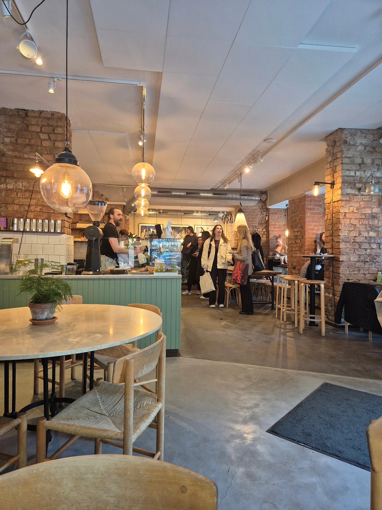 이곳에는 걸어서 10-15분 간격으로 카페가 두어 곳 모여있는 장소를 마주치게 된다. 큰 간판이나 눈에 띄는 색상의 로고 없이 테라스 지붕 같은 야외 좌석을 겸비한 벽돌 느낌의 카페가 대부분이다. 내부로 들어오면 커피와 빵의 종류도 대체로 비슷하다. 겨울이 긴 도시답게 시나몬과 카다몬을 첨가해 향신료가 따뜻하게 코를 감싸는 페스츄리가 즐비해있고 마차라테와 차이라테도 꼭 메뉴에 포함돼 있다. 이곳 카페는 옹기종기 모여서 대화를 나누는 사람들로 북적인다. 공부하는 이들은 헤드폰을 끼고 노트북이든 책이든 뭔가에 집중하고 있다. 그렇다면 이곳은 서울의 카페 문화와 크게 다르지 않는가? 그건 좀 이견이 있다. 왜냐하면 이곳은 인테리어 분위기며 메뉴며 카페마다 큰 차별을 두고 장사를 하기보다 카페의 본래 가진 장점, 도시 생활 속 좁은 아파트를 벗어나 사회적 활동을 하고 잠깐 휴식을 위해 모두 평준화된 카페 문화를 즐기고 있다. 메뉴도 가게마다 빵종류마저 거의 같고, 좌석은 나무 테이블로 딱딱하지만 운치 있는 느낌을 가져다준다. 이곳에선 내가 도시 속에 침투해서 사람들을 관찰하기도 시선을 받기도 하는 사회적 무대 장치인 듯하다.