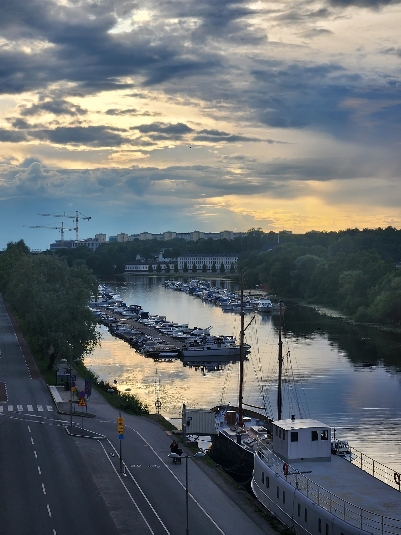 군도로 이루어진 스톡홀름은 도시 어느 곳에서든 물을 마주하고 햇살이 별처럼 반짝거리는 강물을 감상할 수 있습니다. 강가를 따라 도보가 대부분 형성되어 있고, 그 옆엔 2차선 도로나 건물이 자리 잡고 있기 때문에 강변 도보로 진입도 굉장히 편리하죠. 도시에 거주하는 시민들은 대부분 걸어서 출근하기에도 적당한 거리인 게, 서울에 비해 아담한 면적의 수도라 걸어 다니기 좋은 (walkable) 도시이죠. 그렇지만 작은 도시라고 해서 자연과 잘 조화되어 있고 걸어서 어디든 갈 수 있게 설계하는 건 아닌듯합니다. 자연을 종교처럼 신성하게 생각하는 스웨덴 사람들은 그들의 자연에 대한 애정이 어디서든 깃들여 있는 거 같네요.
