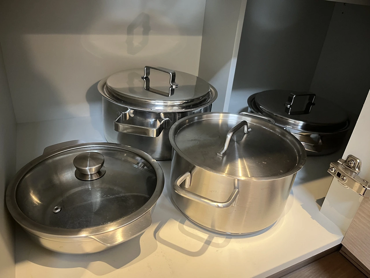 냄비를 여러 단으로 쌓아 보관하기 보다