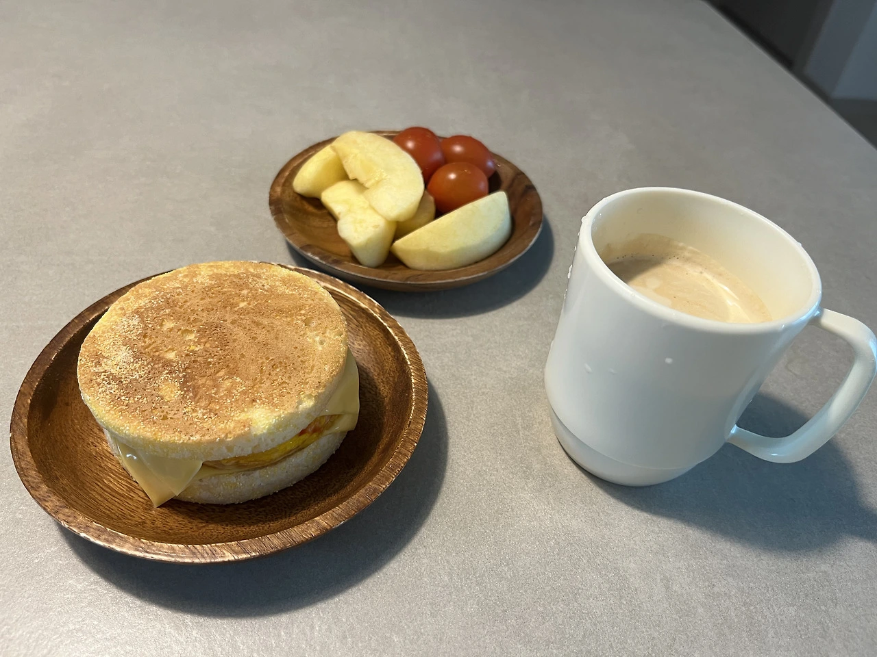 맥모닝 비슷한 빵과 함께 식탁을 차린다.