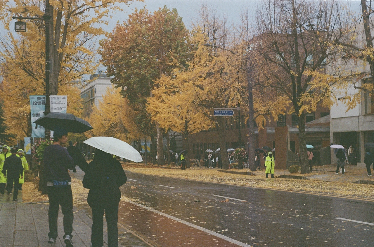 촬영 당시에는 어떤 결과물이 나올지 알 수 없었지만, 필름 특유의 질감과 물기 어린 거리의 분위기가 묘하게 어울렸던 순간이었습니다.