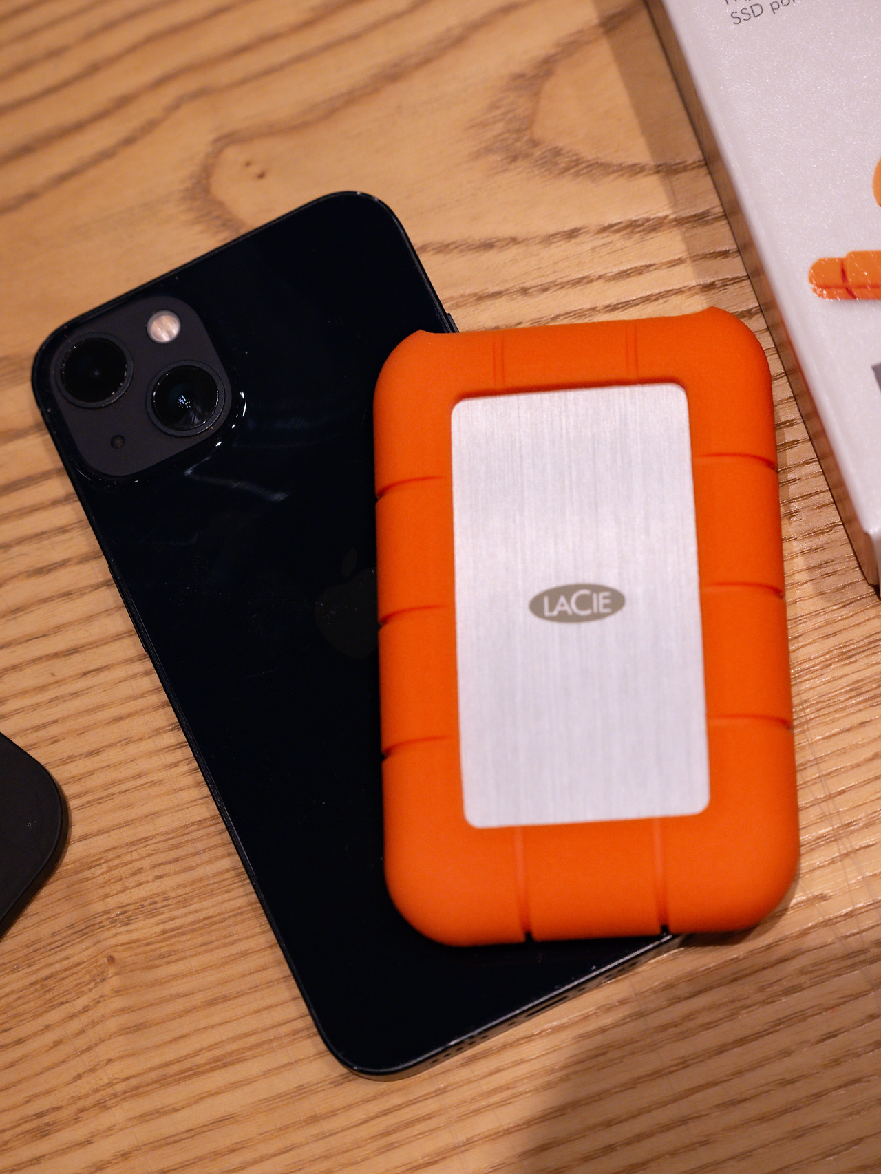 여행과 인물사진을 동시에 즐기는 내게 저장장치는 단순 도구 이상의 존재입니다. 박스를 처음 열었을 때, 오렌지색 실리콘 범퍼가 시선을 사로잡았습니다. 손에 쥐었을 때의 느낌이 독특하다 — 견고함과 부드러움이 동시에 전해집니다. 함께 동봉된 케이블도 컬러 통일감이 있어서 촬영 장비와 함께 놓으면 소품 같은 느낌이 납니다. 이런 정밀한 디자인 덕분에, 처음부터 '작업 환경과 잘 어울릴 것 같다’는 신뢰를 느꼈다. 평소 외장 SSD라 하면 크거나 무겁다는 인상이 있는데, LaCie SSD는 손바닥 한가운데 올려보아도 부담 없었다.