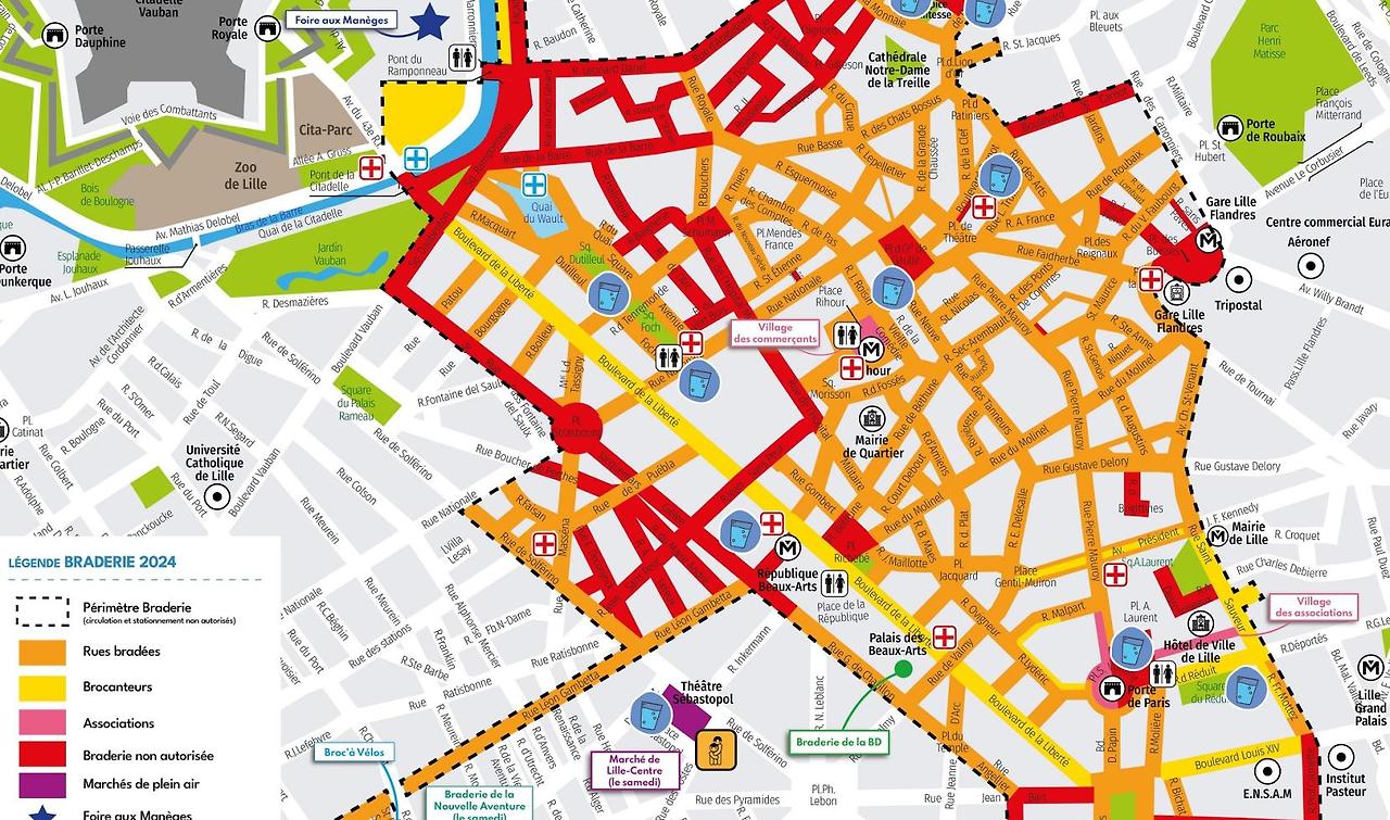 릴의 브라드리는 간단하게 말하자면 주말 내내 온 도심이 매대 길이만 100km에 달하는 거대한 당근마켓이 되는 날이다. 릴 시민이나 외부인 모두 미리 신청하고 자릿세를 낸다면 참여할 수 있기에, 이번 해에는 8000개의 부스가 원래라면 9월 첫째 주말에 열리는 행사는 이번 년에 2024년 파리 패럴림픽 일정을 위해 한 주 늦춰졌다.
