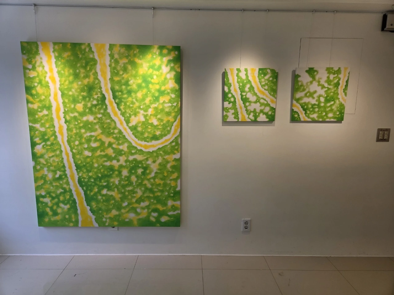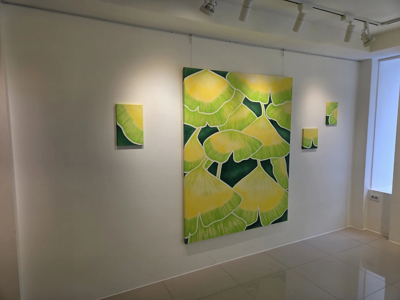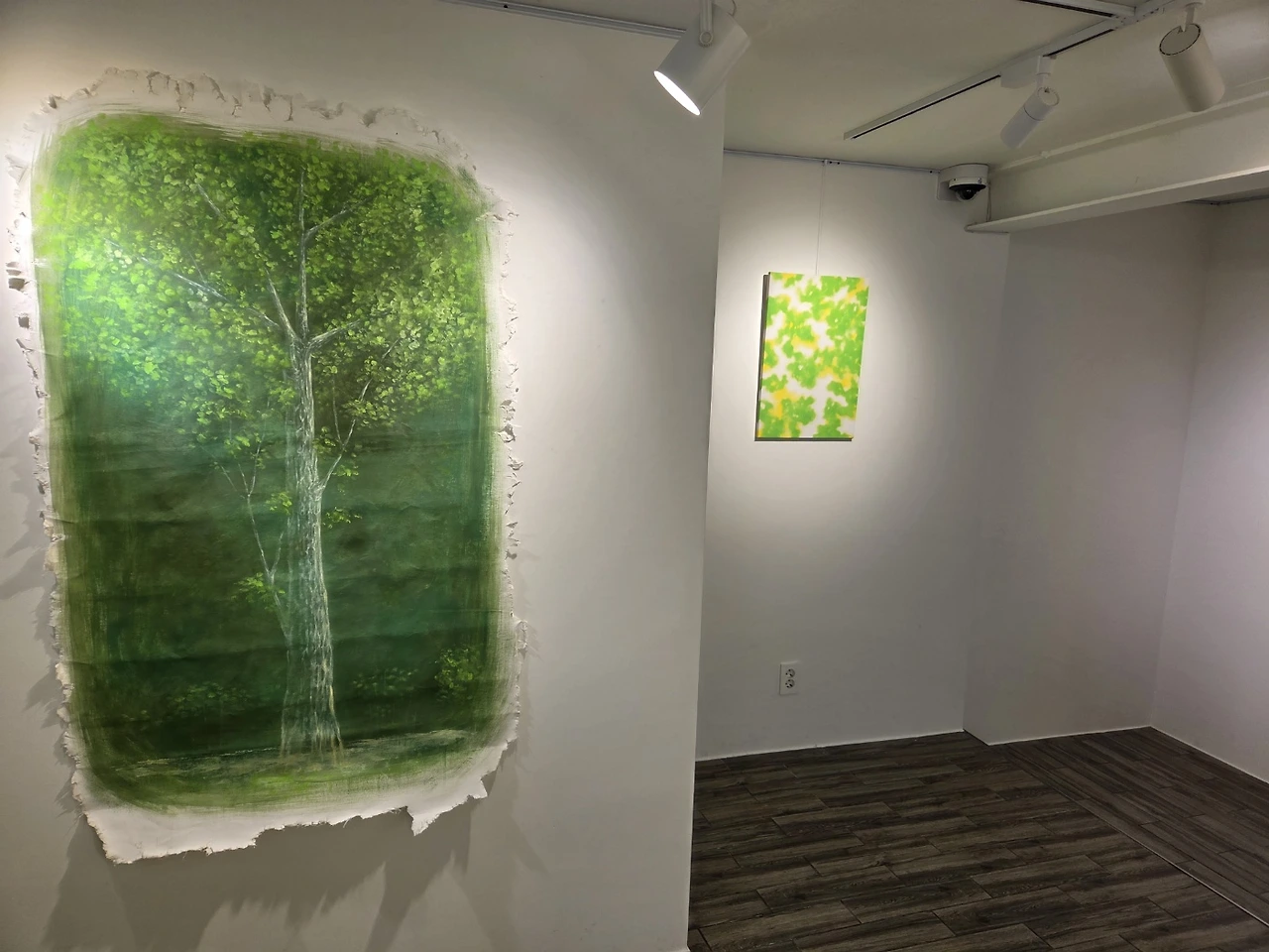 작가는 2021년 새로운 잎이 돋아 자라고 있는 은행나무를 그렸다. 20대의 막막함, 사랑하는 반려견의 죽음 등으로 힘들던 시기 우연히 버스 안에서 차창 밖으로 보았던 은행나무의 모습에서 강한 치유를 경험한 작가는 그때부터 무작정 그것을 그리기 시작했다고 한다. 푸른 5월과 6월의 풋풋함과 용맹함을 지닌 은행나무, 그로부터 받는 강한 위로로 인해 은행나무는 작가에게 중요한 의미 형식이 되어 주었을 것이다. 그리고 더운 여름을 지나 찬란한 노랑으로 물드는 은행나무, 계절이 또 바뀌고 우수수 땅 속으로 사라지는 그 잎새들은 분명 작가에게 이 모든 것이 지나가고 새로운 시작을 하게 할 것이어서 아무것도 그를 슬프게 하지 말아야 한다는 진리를 가르쳐 줄 터였다.