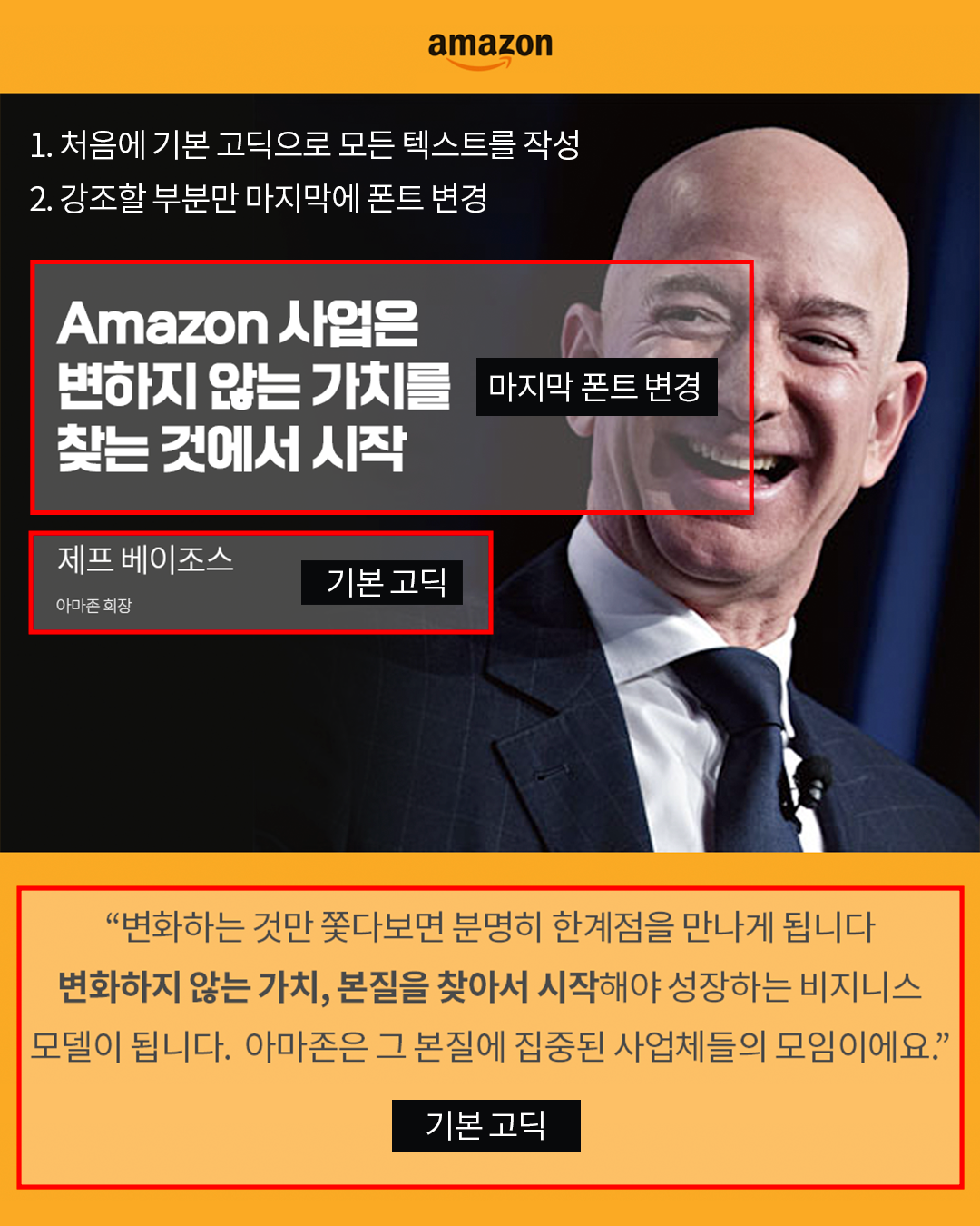 2단계: 강조할 텍스트는 강조하고자 하는 바의 목적이 담긴 폰트로 바꾼다.