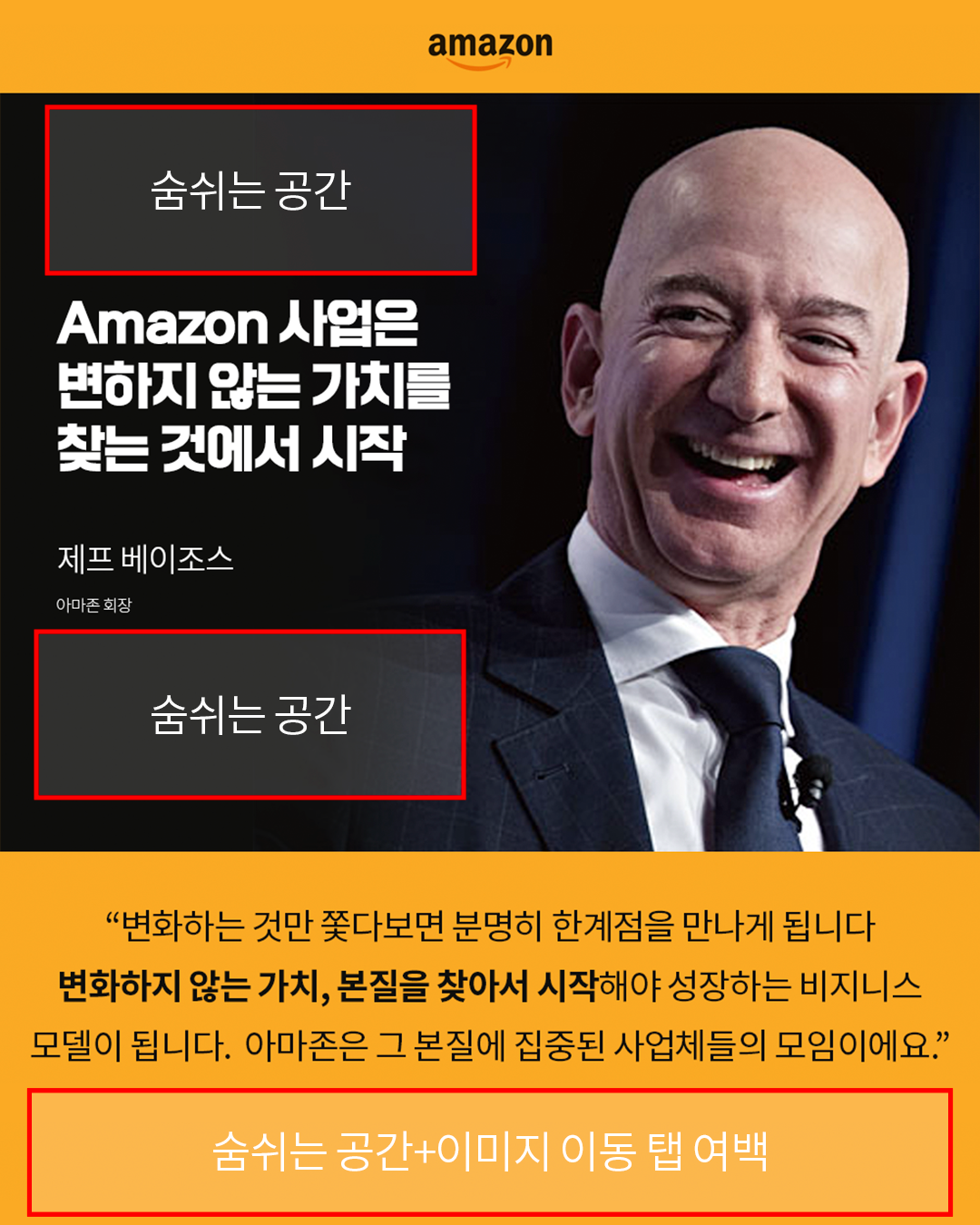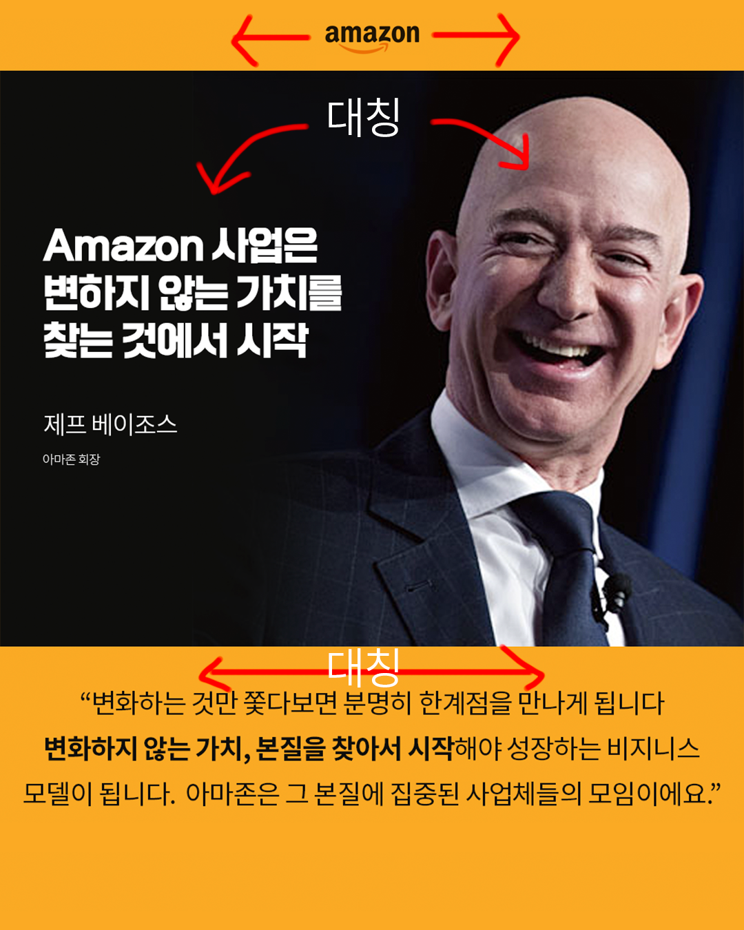 예를 들어 그림 내 맨 위의 아마존 로고를 가운데에 놓거나, 다른 작은 텍스트를 추가해서 좌우 대칭으로 놓거나 한다.