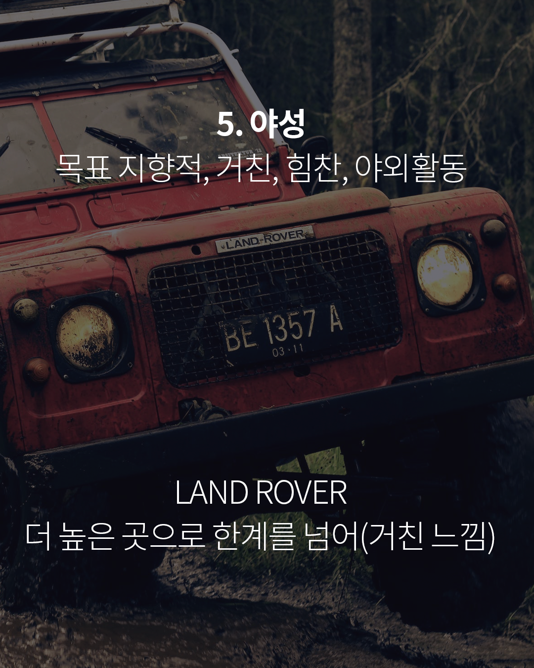 5. 야성: 목표 지향적, 거친, 힘찬, 야외활동