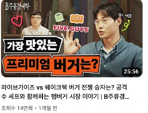 이뿐만이 아니다. 뒤에 또 얘기하겠지만, B주류경제학 스튜디오의 골방 분위기, 인테리어 소품, 마이크, 3계구도, 화질, 편집, 트랜지션 등들이 어우러져 고급스럽고 세련된 이미지를 주면서 집중이 될 수 밖에 없는 구조를 가지고 있다.