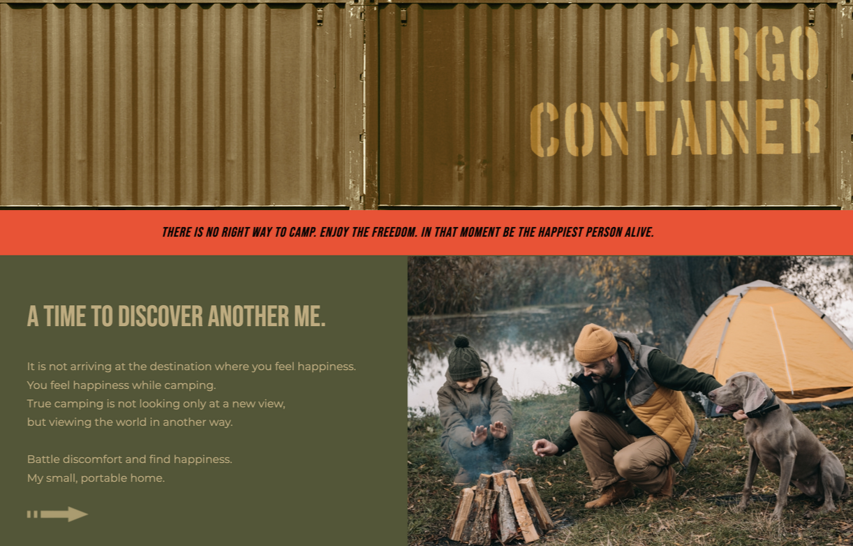 한국인들이 사용하지 잘 사용하지 않을 것 같은 빨간색과 카키색의 조화, 외국인 모델이 있는 콘셉트 촬영 사진, 해외에서 찍을 법한 카고 컨테이너의 시그니처 배경 사진, 브랜드 스토리, 영어로 되어 있는 UX/UI와 사업자 등록 정보.. 모든 게 해외 브랜드 느낌을 띄는 캠핑용품 브랜드이지만 국내 브랜드이다. 카고 컨테이너라는 브랜드 명답게 모든 제품이 컨테이너 안에 느끼기 있는 이미지를 사용함으로써 통일감을 주었고 동시에 해외 게임과 같은 이국적인 느낌도 들었다. 제품마다 콘셉트 촬영을 어두운 조명에서 고퀄리티 다큐멘터리 같이 촬영함으로써 더욱 외국 다큐멘터리에서 봤을 법한 느낌을 주고 있다. 영상과 사진 촬영 물 볼 때마다 참 잘 만들었다...라는 생각이 들 수밖에 없다.