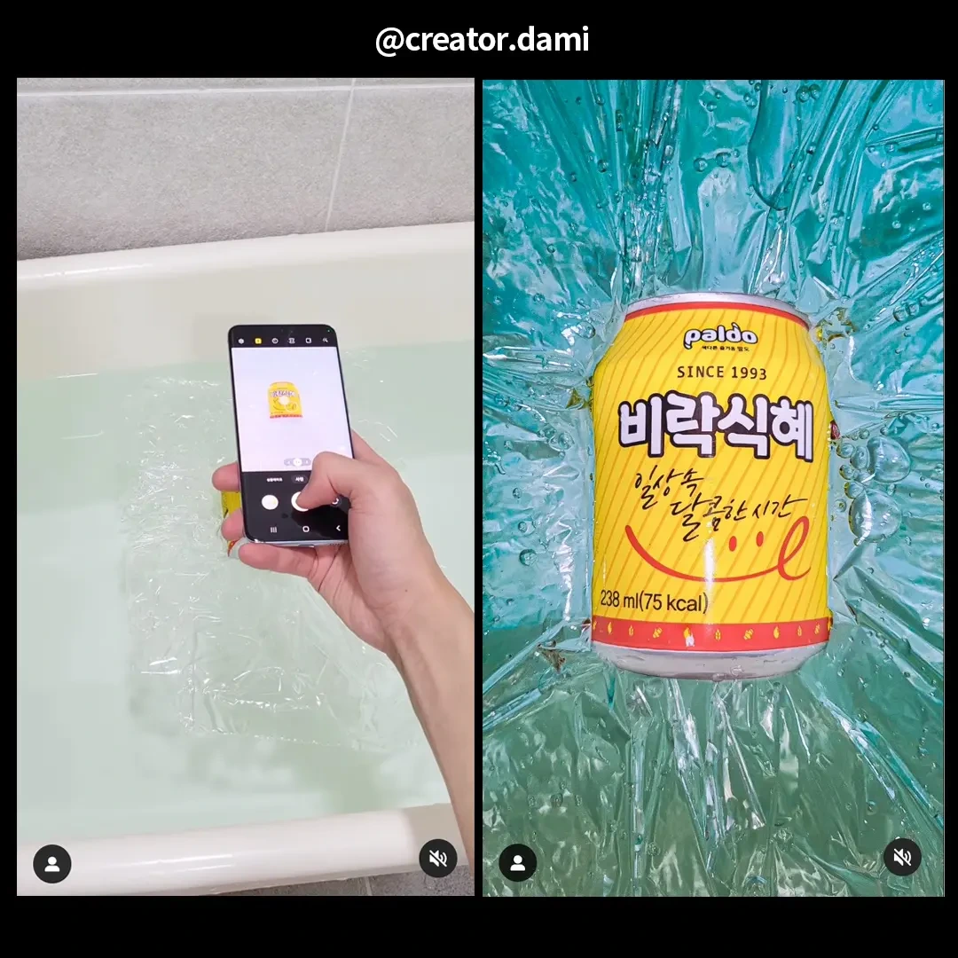 . 3. 촬영 및 제작 공부_2장. @creator.dami 첫번째 사진은 제품이 어두운 배경 속에서 빛나는 영상을 찍는 방법이다. 모바일로도 이렇게 느낌있는 영상이 나올 수 있다니.저런 느낌이 필요한 작은 브랜드에게 정말 유용한 꿀팁이다. . 두번째 사진은 제품을 물과 비닐위에 띄워서 시원하고 크리스탈 느낌나게 찍는 방법이다. 나중에 캔으로 된 주류 브랜드 마케팅 하고 싶었는데, 캔 음료는 아무리 잘 찍어도 느낌나게 찍기 어려운데, 이걸 참고하면 좋을 것 같다고 생각이 들었다.